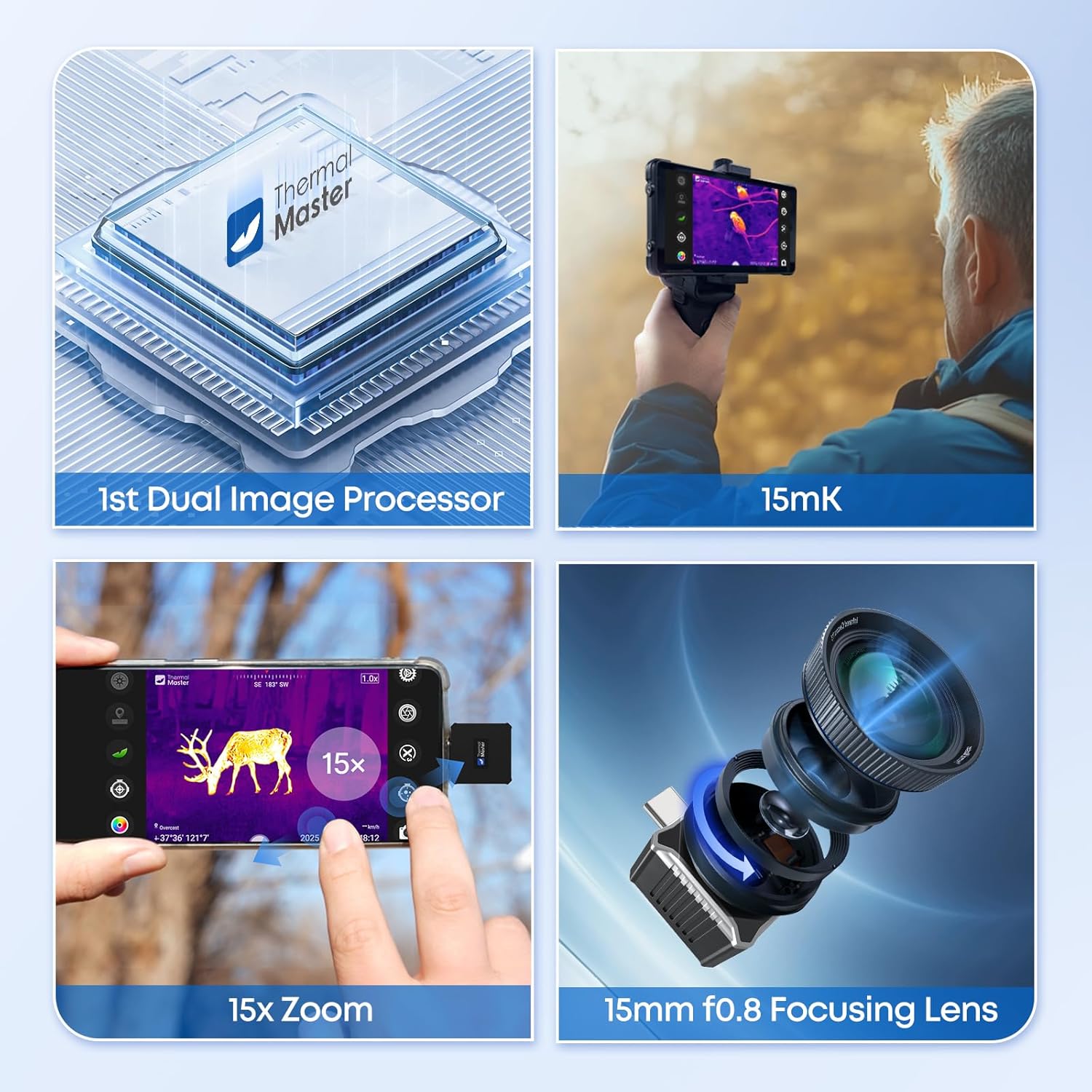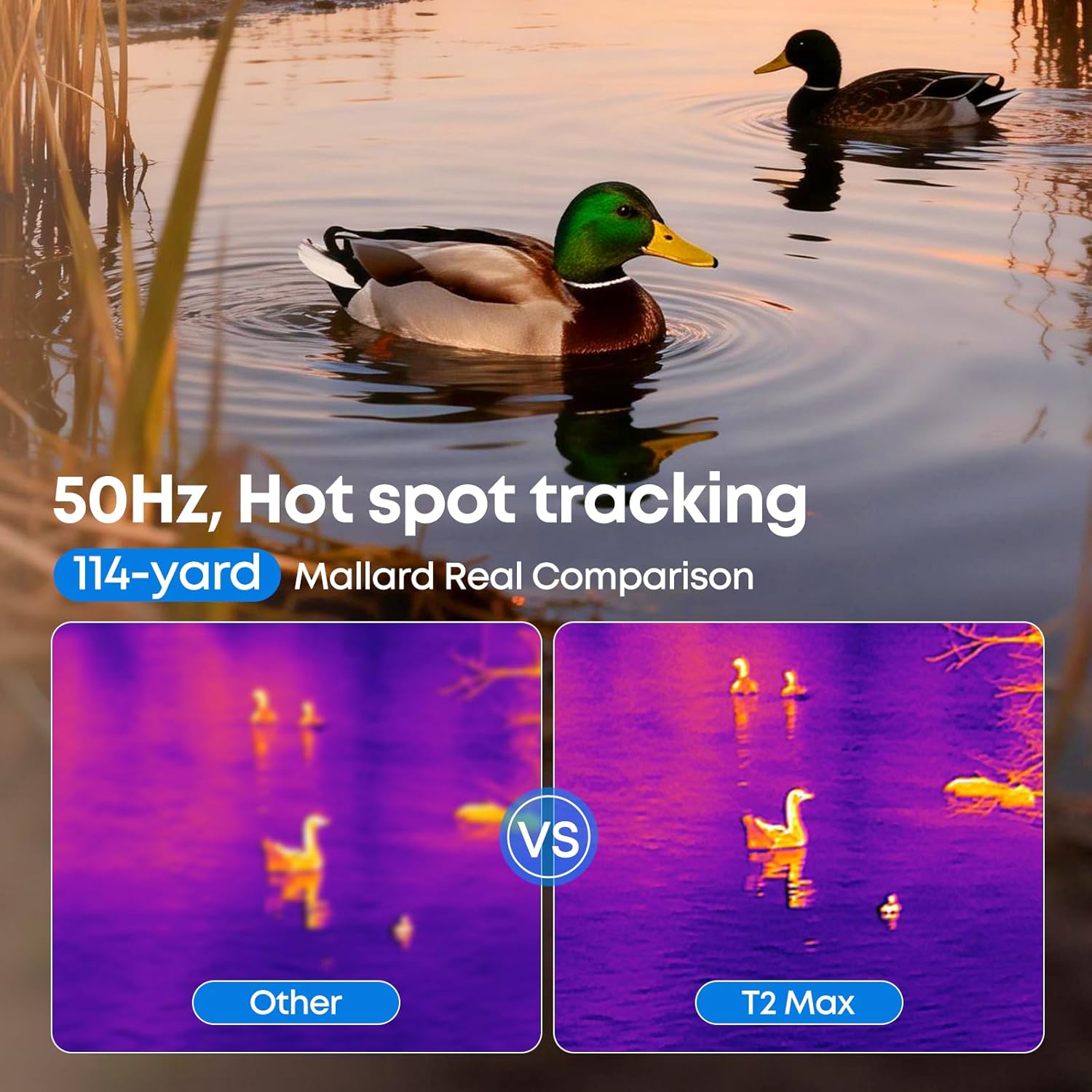 SMOOTH 50HZ TRACKING WITH 15× DIGITAL ZOOM: A 50Hz refresh rate delivers smooth, real-time thermal imaging with reduced motion blur. Up to 15× digital zoom, picture-in-picture view, and hotspot tracking allow precise monitoring of fast-moving birds and animals. Supports photo and video recording for reviewing and sharing observations