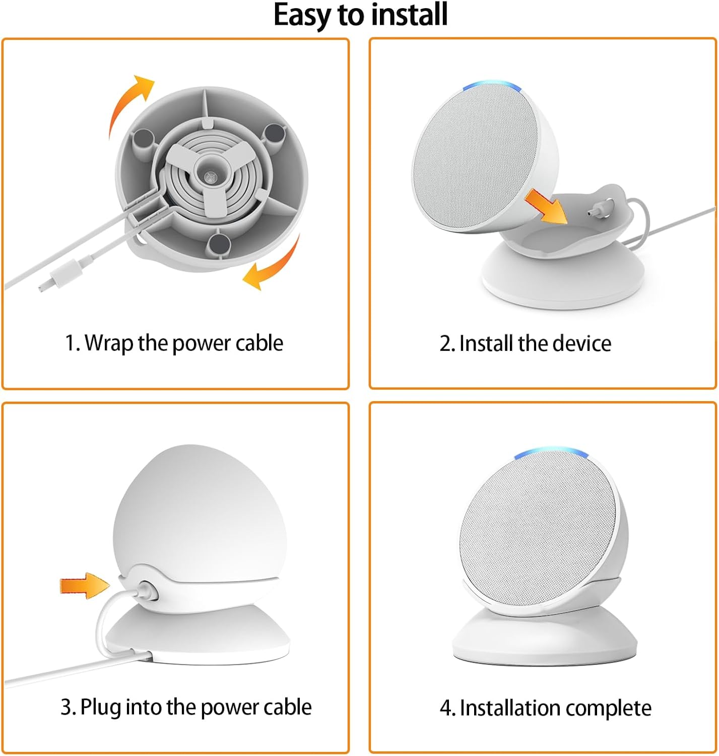 【BUILT-IN CABLE MANAGEMENT】The power cord can be completely hidden behind the stand for Echo Pop, avoids ugly cord, and Keeps your life tidy.