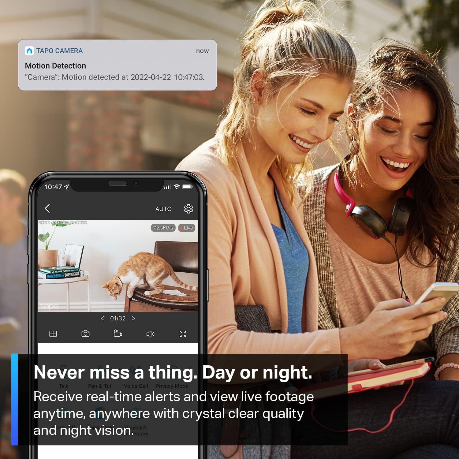 DETECTION & INSTANT NOTIFICATIONS: Get alerts for motion, people, or crying. No extra fee to use it as a baby monitor. Smart detection filters out unimportant activity, so you’ll know if it’s just your pet playing or someone is actually there.