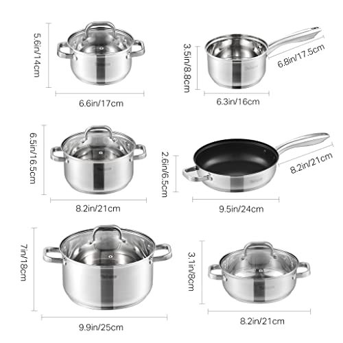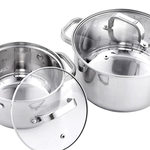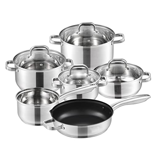 TEDILUVI Stainless Steel Cookware Set 10 Piece Safety Induction Pan Nonstick Skillet Casserole With Glass Lid