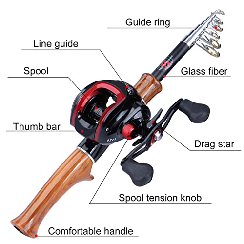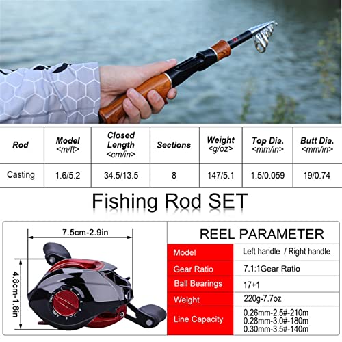 Telescopic Fishing Rod 1.6m Fishing Rod and Reel Combo Carbon Fiber Casting Fishing Rod and 17+1 BB 7.1:1 Gear Ratio Casting Fishing Reel Outdoors Fishing Pole (Yellow Right Hand) (White Left Hand)