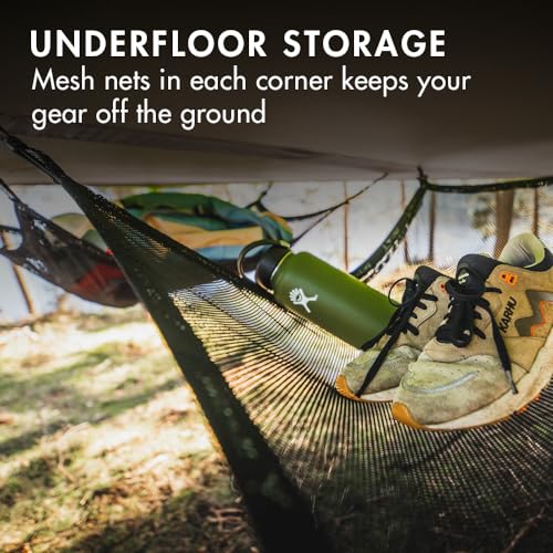 ALL WEATHER SHELTER: The 70D Polyester rainfly is PU coated to 5,000HH for rainy wet nights, or fly can be totally removed for fantastic views and stargazing, polyester mesh provides protection