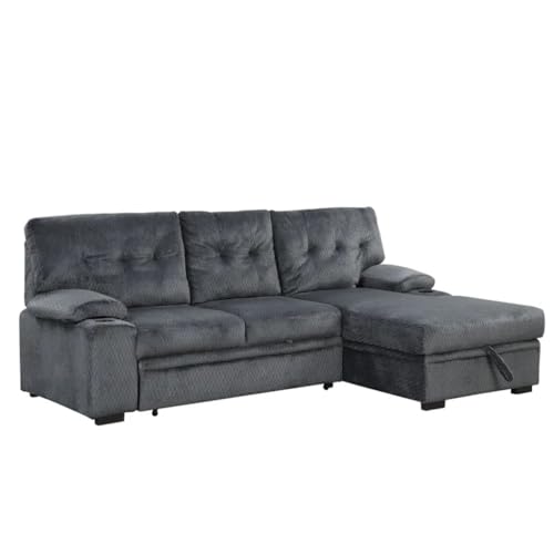 TEOYETTSF 95.7″ Padded Upholstered Sofa Bed Sleeper Sectional Sofa with Storage Chaise and Cup Holder for Living Room Furniture Set(E)