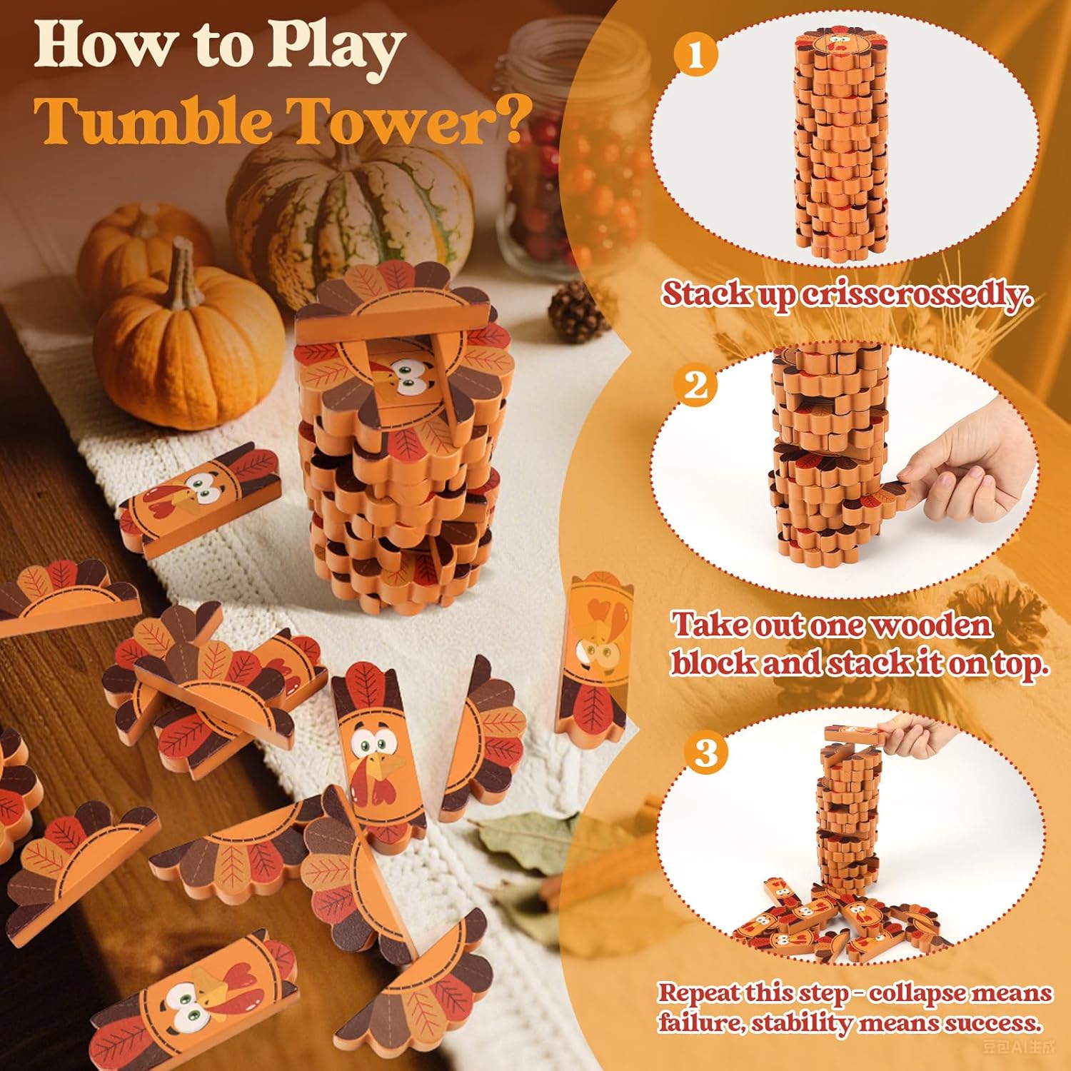 【Fun for the Whole Family】Perfect for both kids and adults, this Thanksgiving stacking tower game brings laughter and excitement to family game nights. It adds a festive and joyful atmosphere to your holiday celebrations and helps bring people closer through interactive fun.
