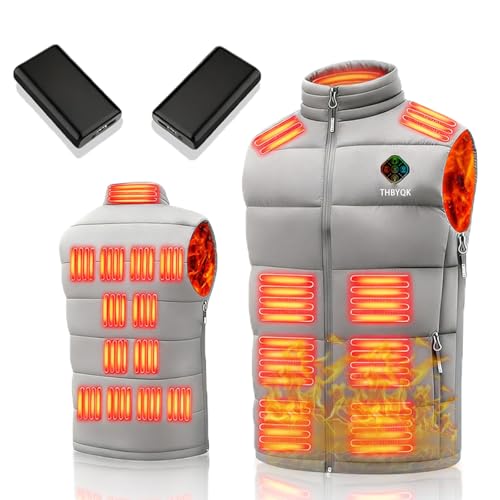 THBYQK 21 Zone Heated Vest for Men & Women with 2 Pcs 20000mAH 7.4V Battery Pack 5 in 1 Smart Controller (US, Alpha, X-Large, Regular, Regular, Grey)