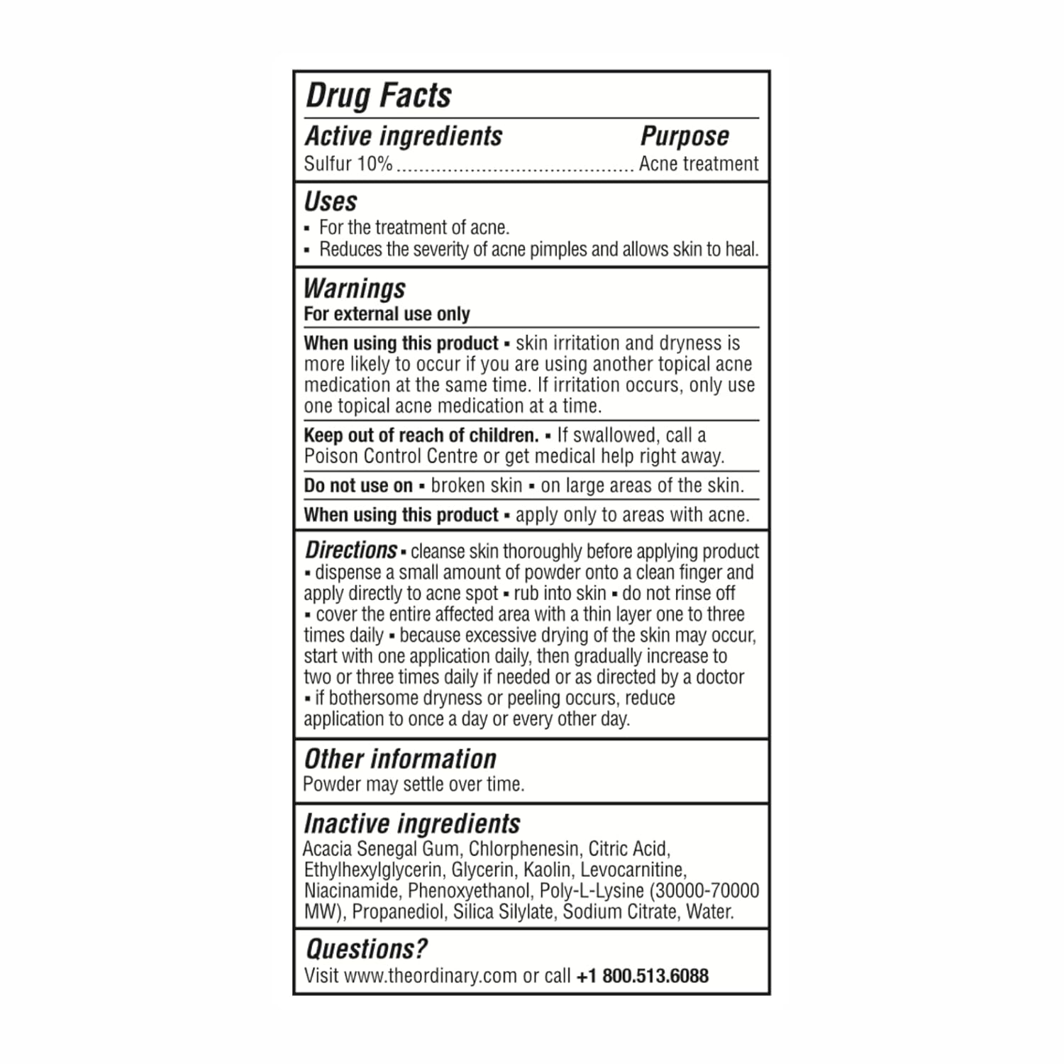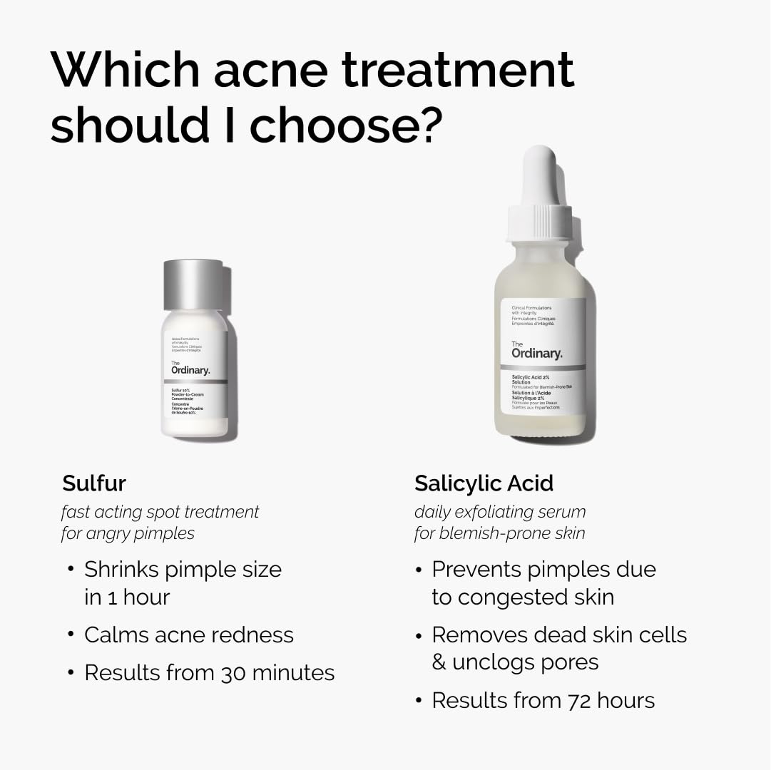 The Ordinary Sulfur 10% Powder-to-Cream Acne Spot Treatment Concentrate, Reduces Pimple Size and Zit Redness, 0.18 Oz