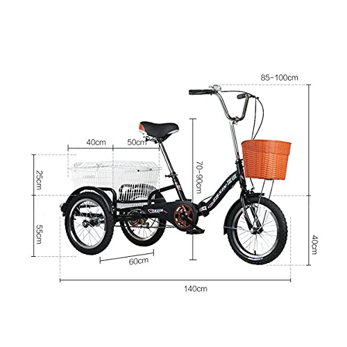Three Wheel Bike Outdoor Adult Tricycle Mountain Bike Cruiser Trike 16 Inch Adults Trikes with Shopping Basket Exercise Men’s Women’s Tricycle Cycling Pedalling