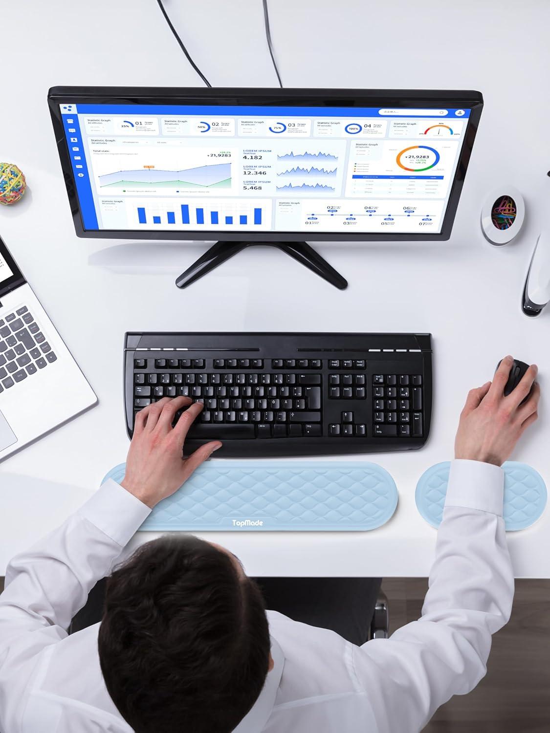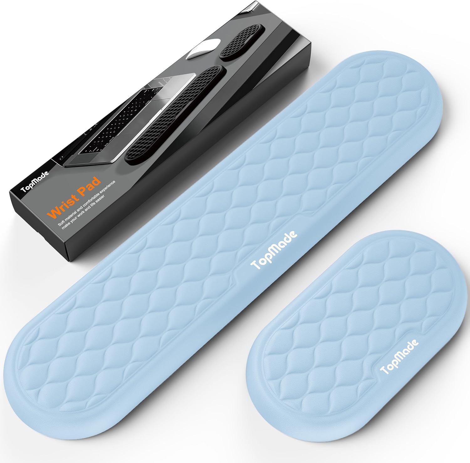 Specification: TopMade Upgraded Wider Wrist Rest Set, Soft Memory Foam Keyboard Hand Rest Pad, Computer Ergonomic Keyboard Mouse Wrist Support for Typing Pain Relief, Comfort for Office, Gaming, Study, White Ice