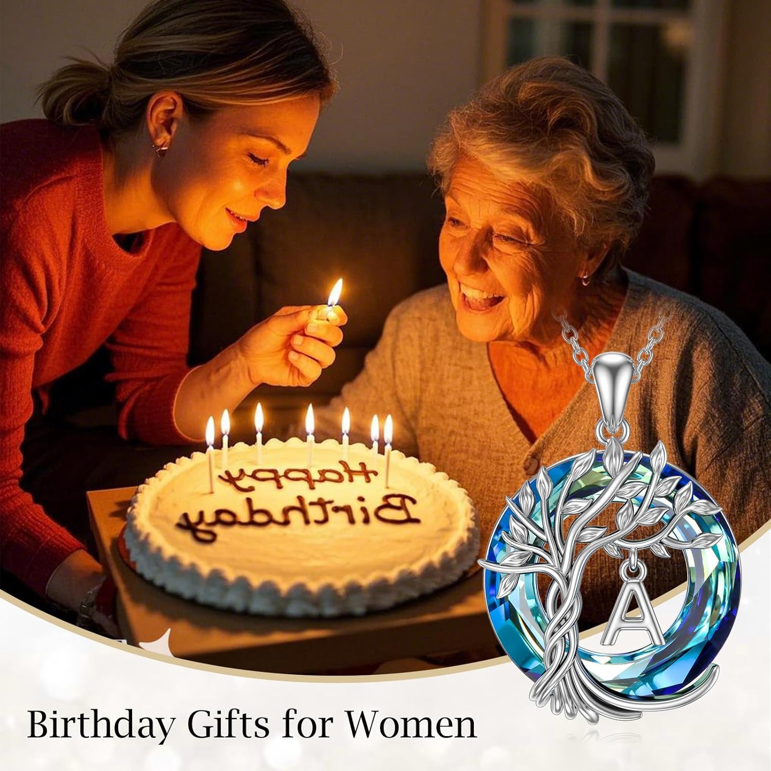 TOUPOP Gifts for Women Tree of Life Necklace 925 Sterling Silver Initial Pendant Family Tree Crystal Jewelry Anniversary Birthday Gifts for Mom Wife Daughter