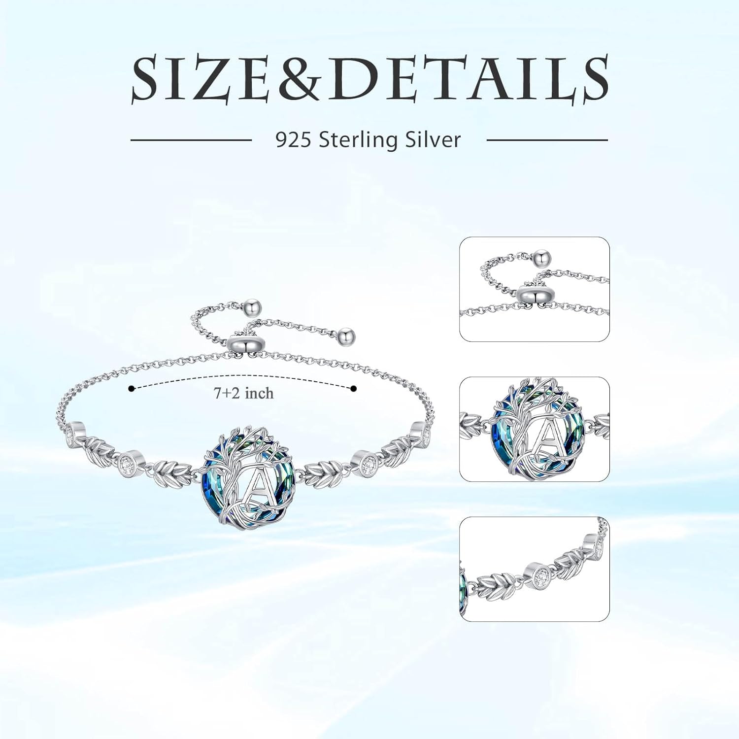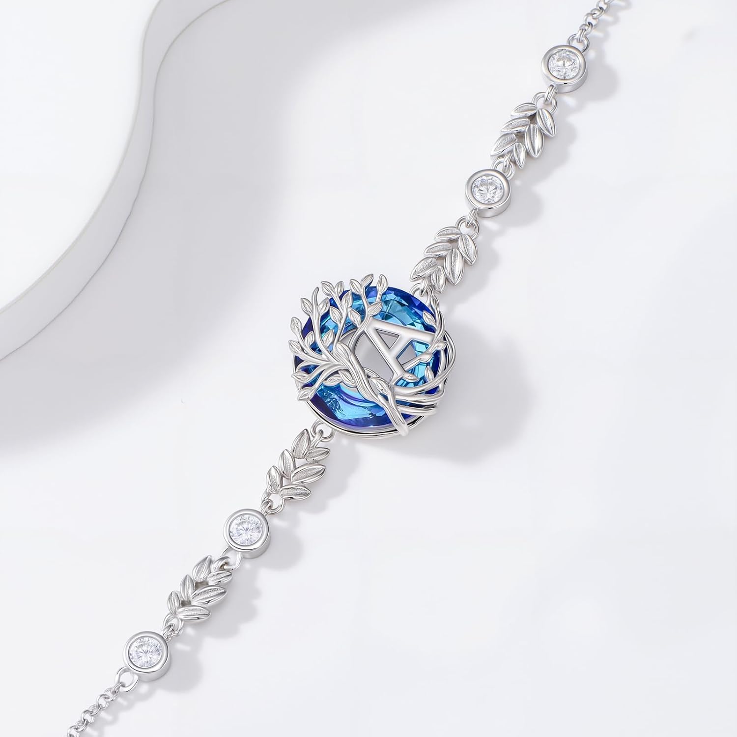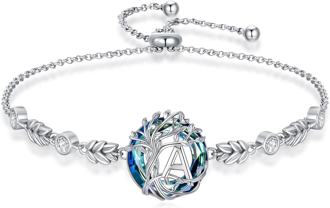 TOUPOP Tree of Life Initial Bracelet 925 Sterling Silver A-Z Letter Bracelet Blue Circle Crystal Jewelry Birthday Valentines Day Gifts for Women Her Wife Mom