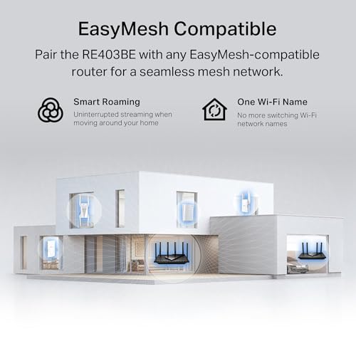 𝐄𝐚𝐬𝐲𝐌𝐞𝐬𝐡-𝐂𝐨𝐦𝐩𝐚𝐭𝐢𝐛𝐥𝐞 – Easily expand your network for seamless, whole-home coverage by connecting the RE403BE to any EasyMesh-compatible router. *