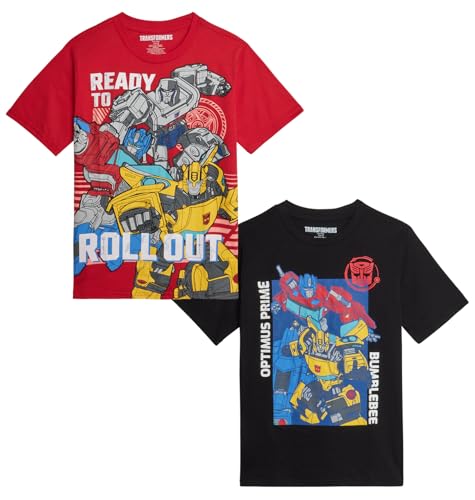 TRANSFORMERS Boys T-Shirt – 2 Pack Optimus Prime Bumble Bee Autobot Graphic Tee – Short Sleeve Shirt for Toddler/Boys (3T-16), Size 5-6, Transformers Black/Red
