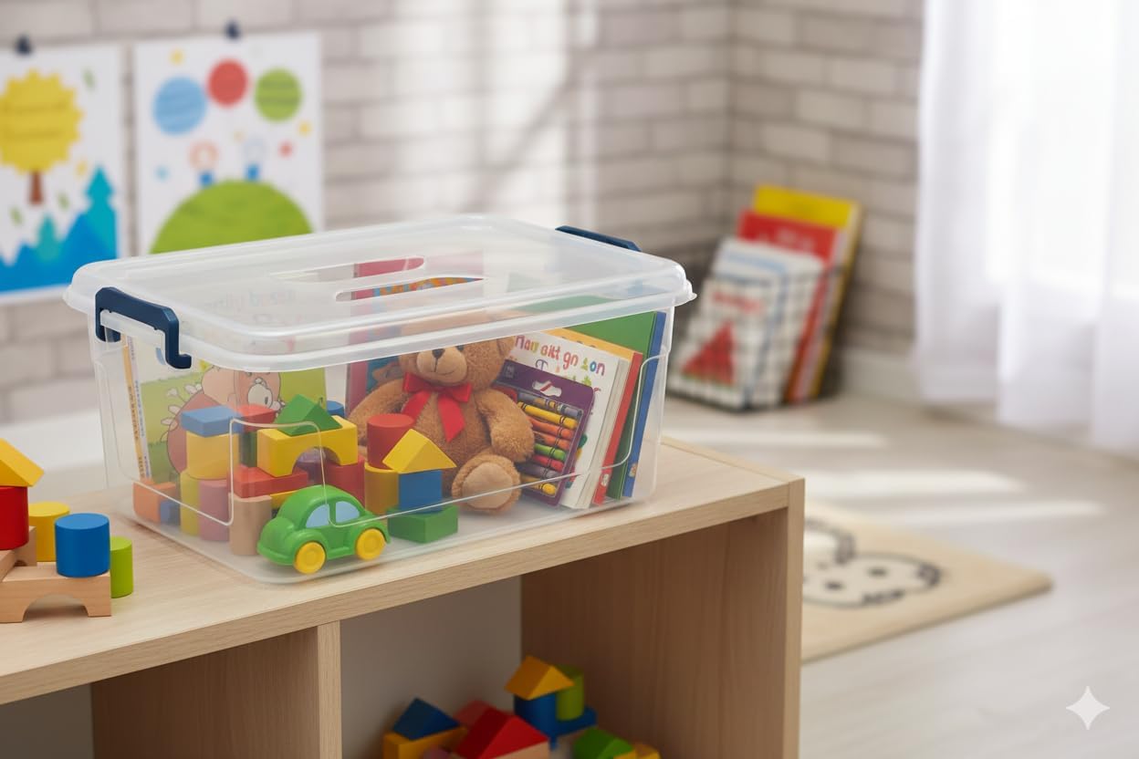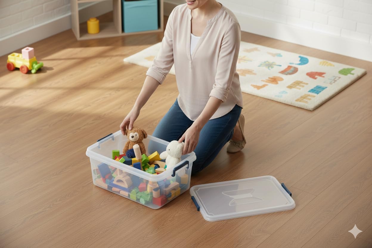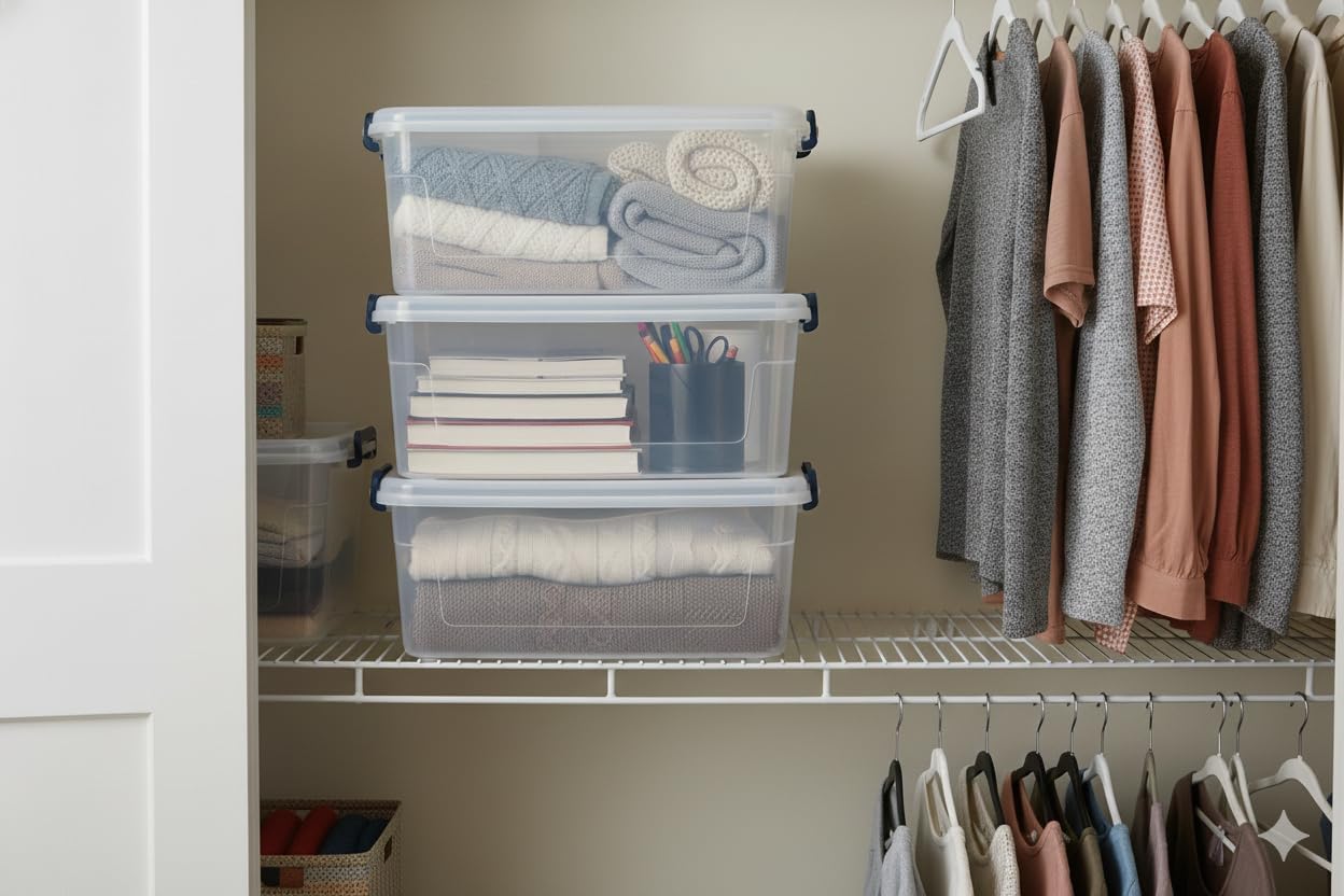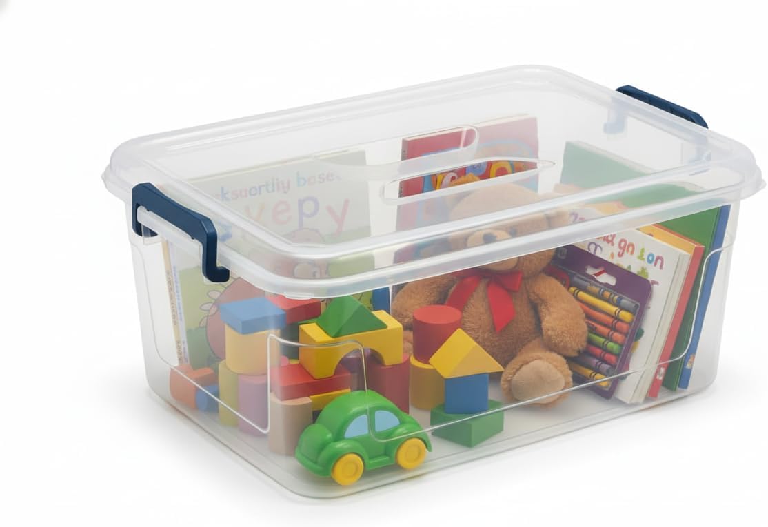 Locking Laches : These storage containers with lids feature locking latches to hold the lids tight, keeping your belongings dust-free and ready to use in your storage totes whenever you need them.