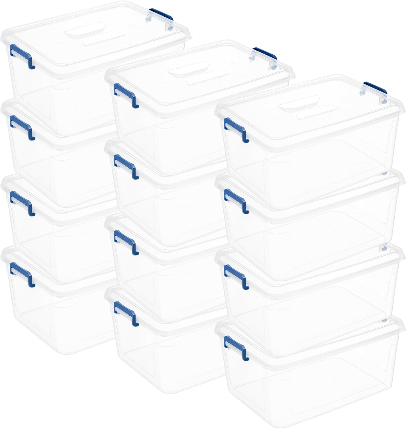 Tribello Clear Storage Bins with Lids, 12-Pack Stackable Plastic Storage Containers for Home Organization – Totes for Closet and Underbed Storage, 21 Quarts