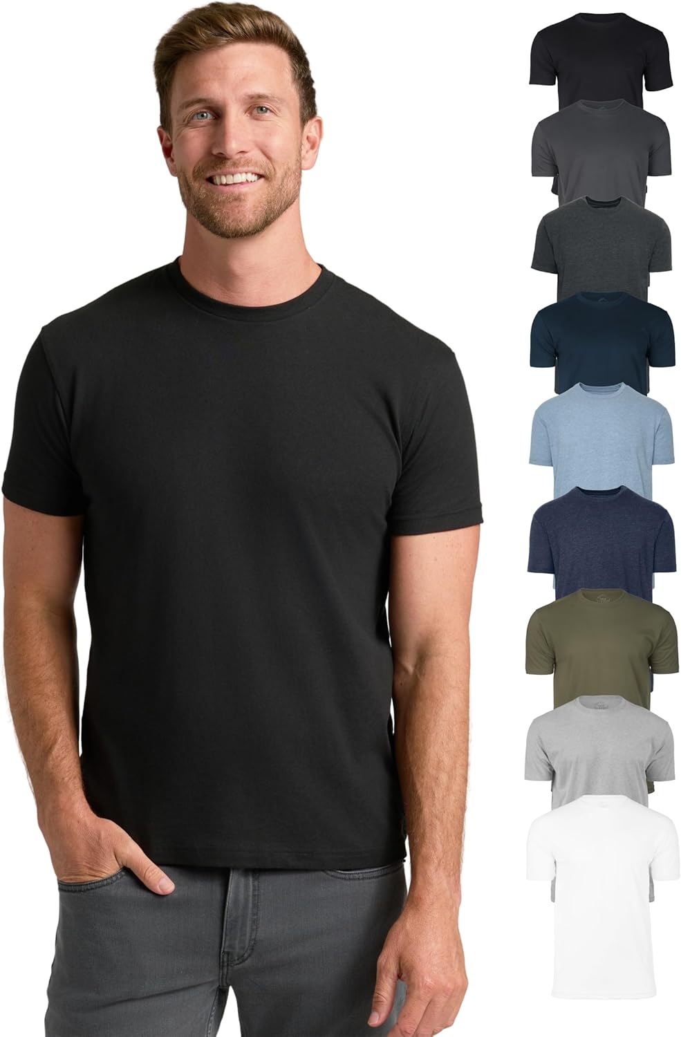 Discover the mens t shirt that set the standard for comfort, quality, and everyday versatility. Designed in a premium 60% cotton and 40% polyester blend, each t shirt offers a buttery-soft feel with just the right amount of stretch. The result is a shirt that customers describe as true to size, soft to wear, and durable through many washes. These crew neck short sleeve t shirts for men are built for both comfort and style. They flatter where it matters—your chest and shoulders—while keeping you comfortable with breathable fabric that won’t weigh you down. Whether you need plain white tshirt men can layer, a mens black tshirt that works with anything, or a multipack to cover your weekly rotation, this collection has it all. With sizes from S–3XL and colors ranging from classic black tees for men and white to navy and charcoal, these shirts are ready to fit seamlessly into your wardrobe. Machine washable with minimal shrinkage, they’re practical staples you can wear again and again. Choose comfort, choose style, choose the t-shirt that makes getting dressed effortless.