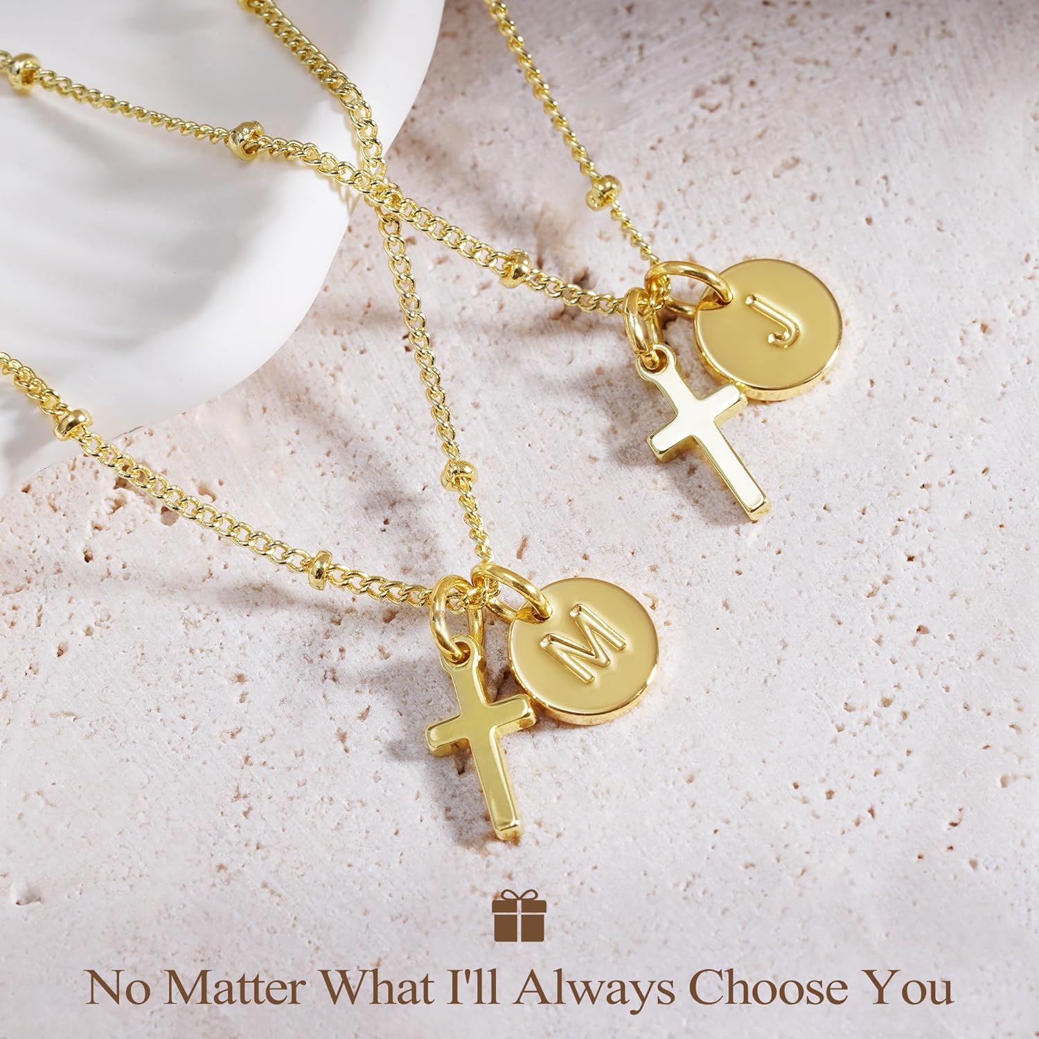 Turandoss Valentines Day Gifts for Kids Teen Girls – Dainty 14K Gold Plated Cross Disc Initial A-Z Pendant Necklace Trendy Faith Jewelry Birthday Personalized Valentines Gifts for Women Girls