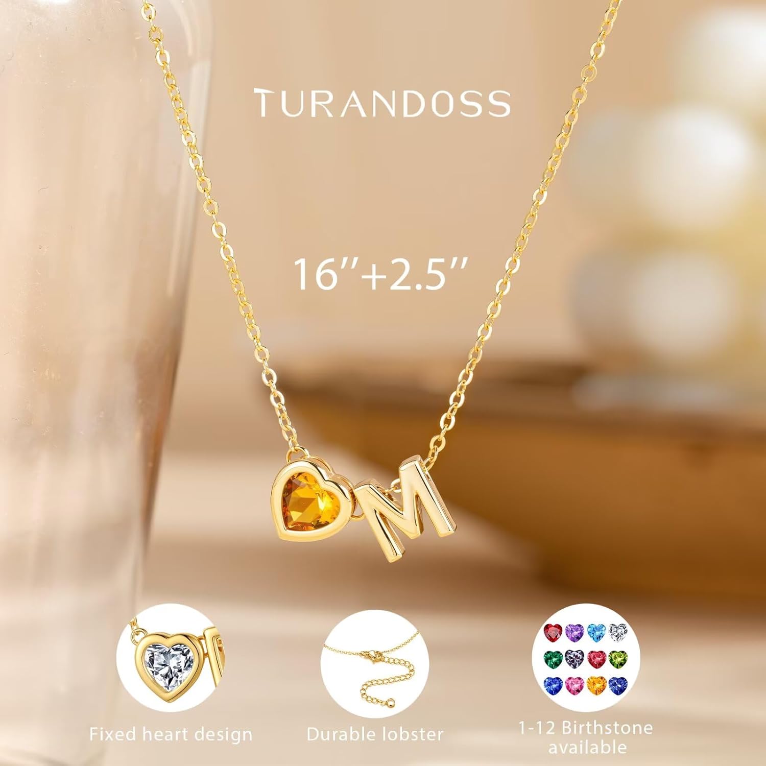 Turandoss Valentines Day Gifts for Women Teen Girl Kids – Initial Heart Birthstone Necklace, Dainty 14K Gold Plated Letter A-Z Birthstone Pendant Necklace for Her Girlfriend Wife Mom Jewelry Gifts