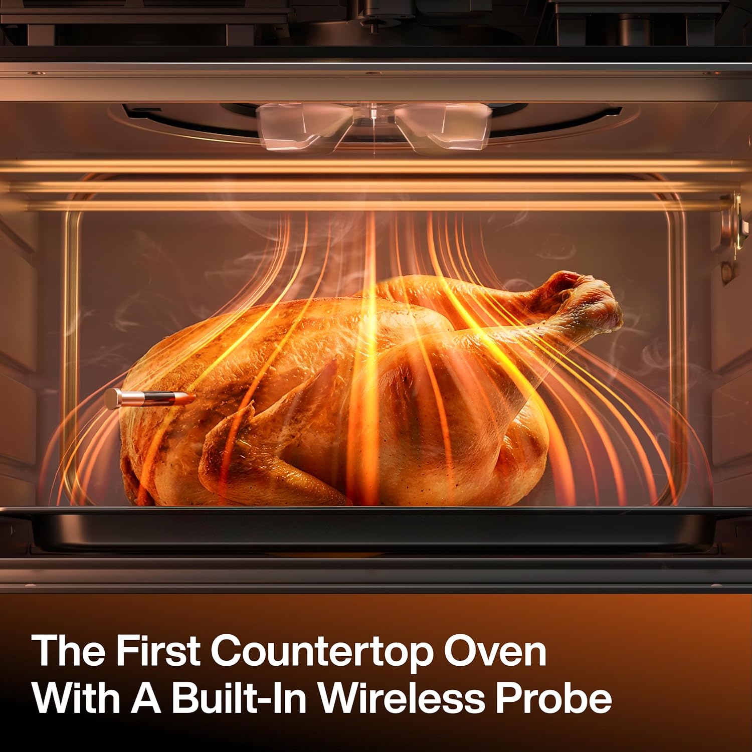 𝐖𝐨𝐫𝐥𝐝’𝐬 𝐅𝐢𝐫𝐬𝐭 𝐎𝐯𝐞𝐧 𝐰𝐢𝐭𝐡 𝐁𝐮𝐢𝐥𝐭-𝐢𝐧 𝐖𝐢𝐫𝐞𝐥𝐞𝐬𝐬 𝐏𝐫𝐨𝐛𝐞: Cook with precision at home using the first air fryer oven with a built-in wireless probe. Tracks core temperature in real time and automatically stops at your desired doneness. Smart Remove-Temp auto-shutoff prevents overcooking and a built-in signal booster keeps readings stable through light foil. No wires, no pairing, no guessing.