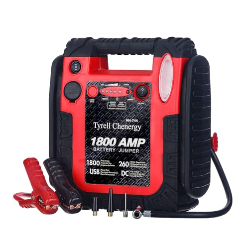 Tyrell Chenergy New Upgrade 1800A Car Battery Jump Starter with Air Compressor, 20000mAh 12V Auto Lead-Acid Battery Booste, 260PSI Tire Inflator (Up to 8.0L Gas/Diesel) with LED Light & USB