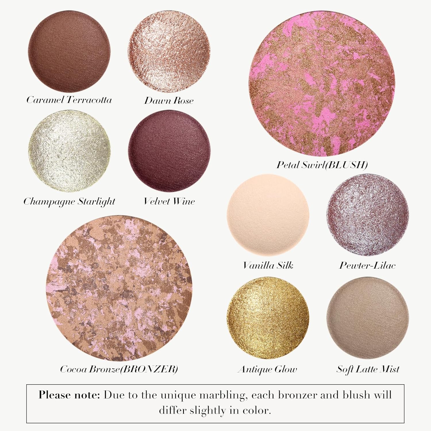 From everyday natural looks to office makeup, sun-kissed bronzed styles, or bold party glam—you get endless options with the 8 eyeshadows, blush, and bronzer.