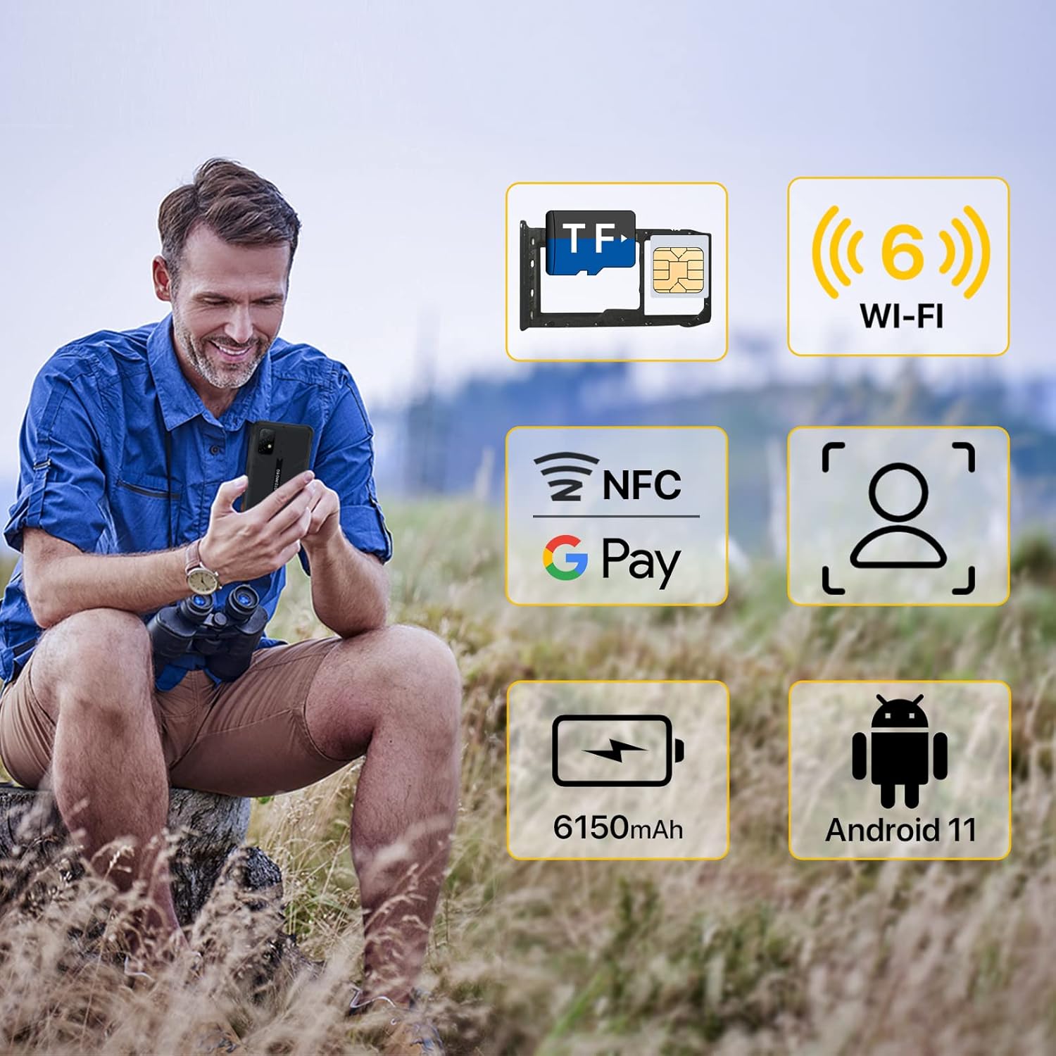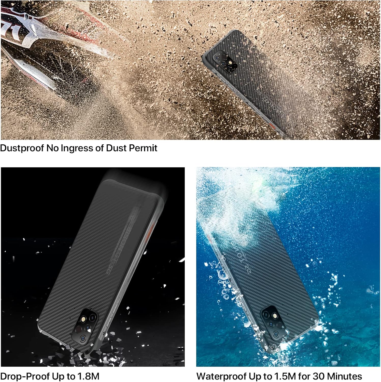 It has also obtained MIL-STD-810G military standard certification and can withstand drops of up to 1.8 meters. Anti-fall The anti-fall rugged cell phone uses a special material, which is durable and reliable.