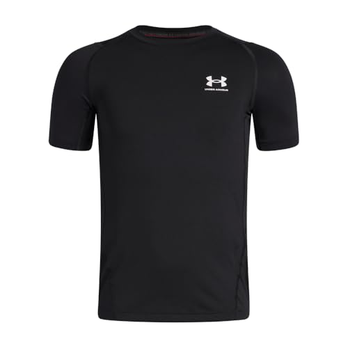 Under Armour Boys’ HeatGear Armour Short-Sleeve T-Shirt, (002) Black / / White, Medium