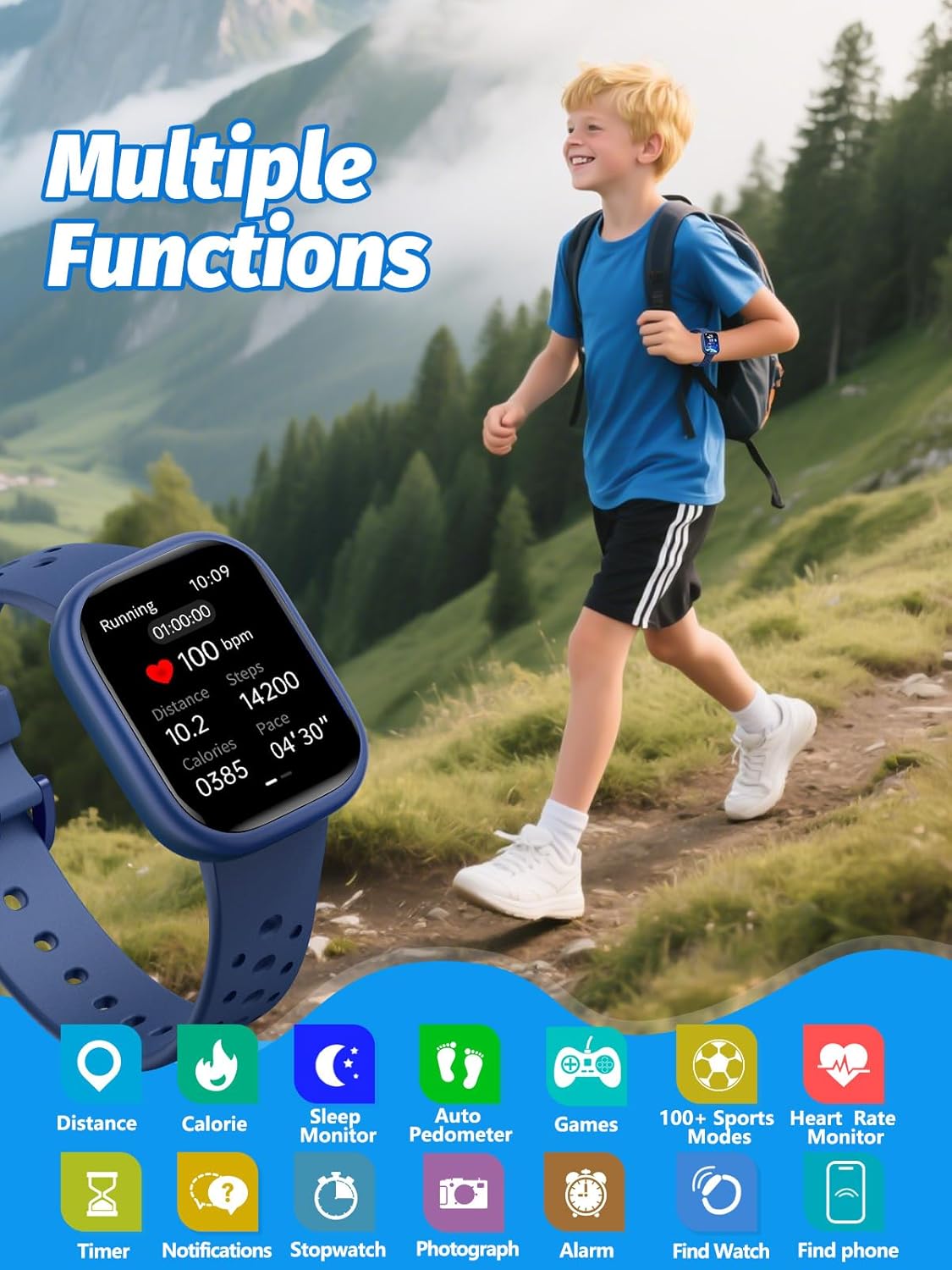 Stylish & Upgraded Design: Features a 1.85-inch ultra-clear HD touch screen, vibrant color options, child-safe materials, and a lightweight band for all-day comfort. Modern aesthetics appeal to kids while ensuring durability.