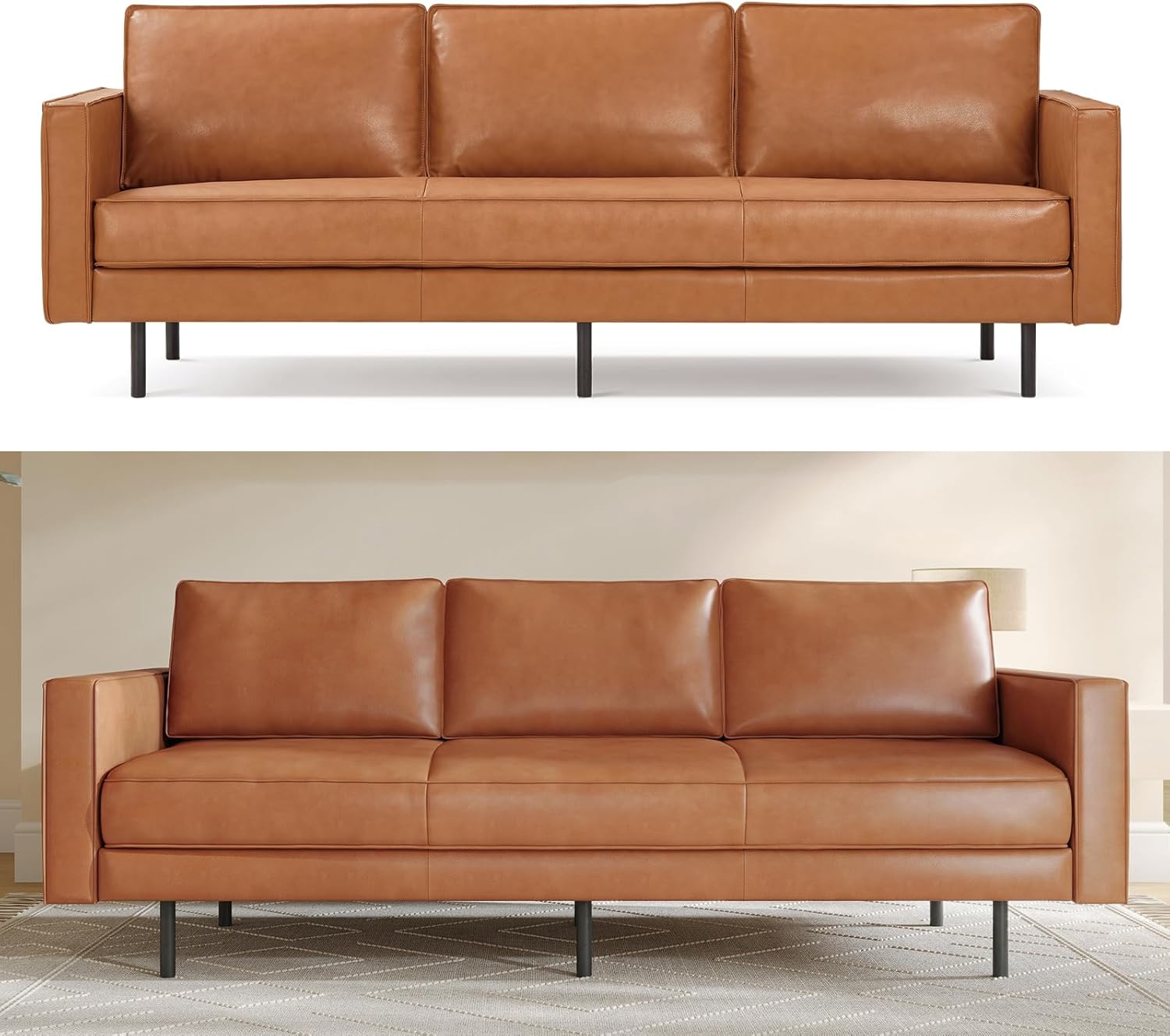 SUPERIOR AND LONG-LASTING COMFORT: Our leather sofas for living room take pride in its plush cushioning, built from High-Resiliency foam, assuring your sofa maintains their shape & comfort for prolonged use.