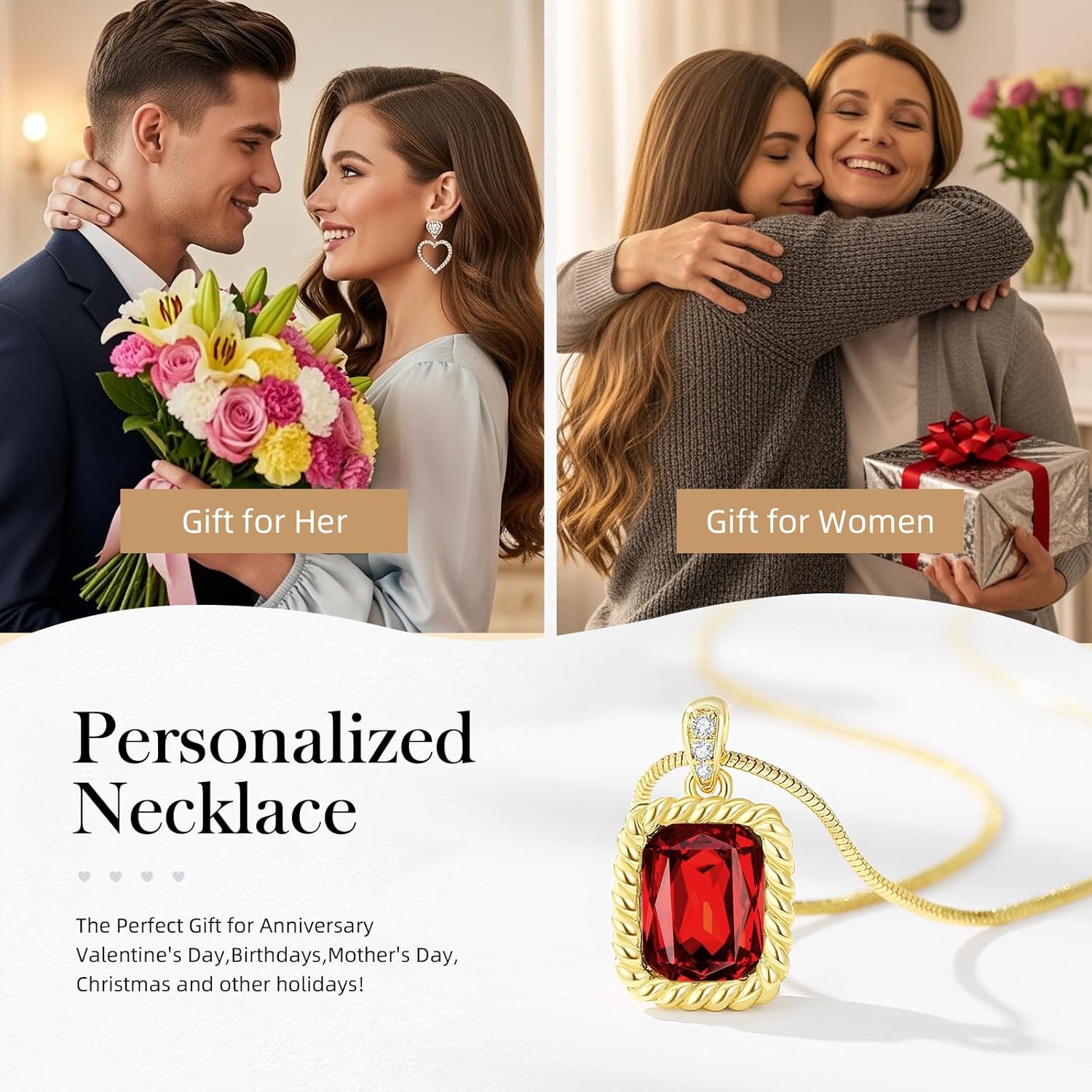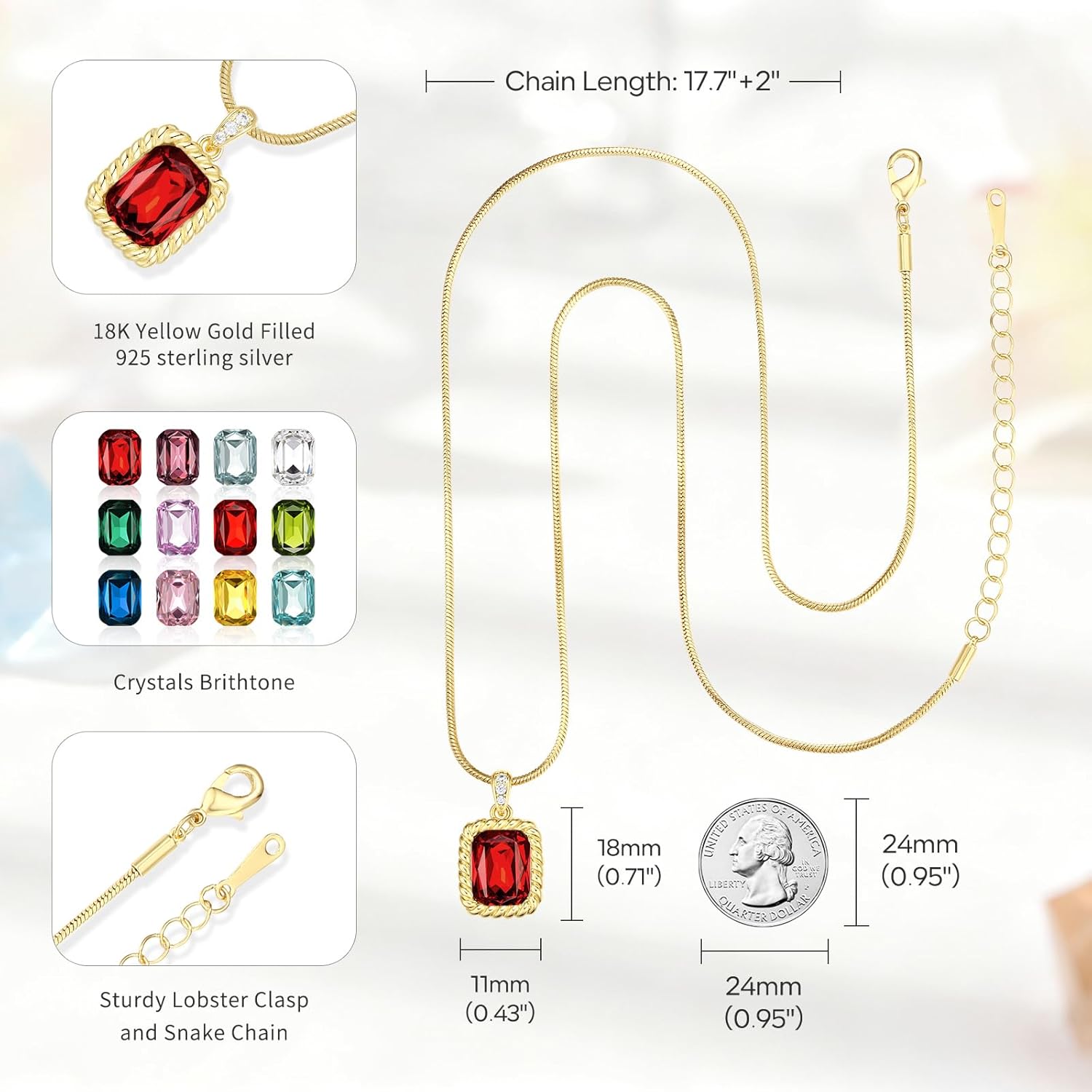 Valentine’s Day Gifts for Her-18K Gold Plated Dainty Square Crystal Birthstone Necklace,Gold Jewelry for Women,Anniversary Birthday Gifts for Women Her Wife Girlfriend Mom Womens Necklace Jewelry