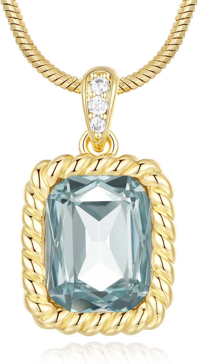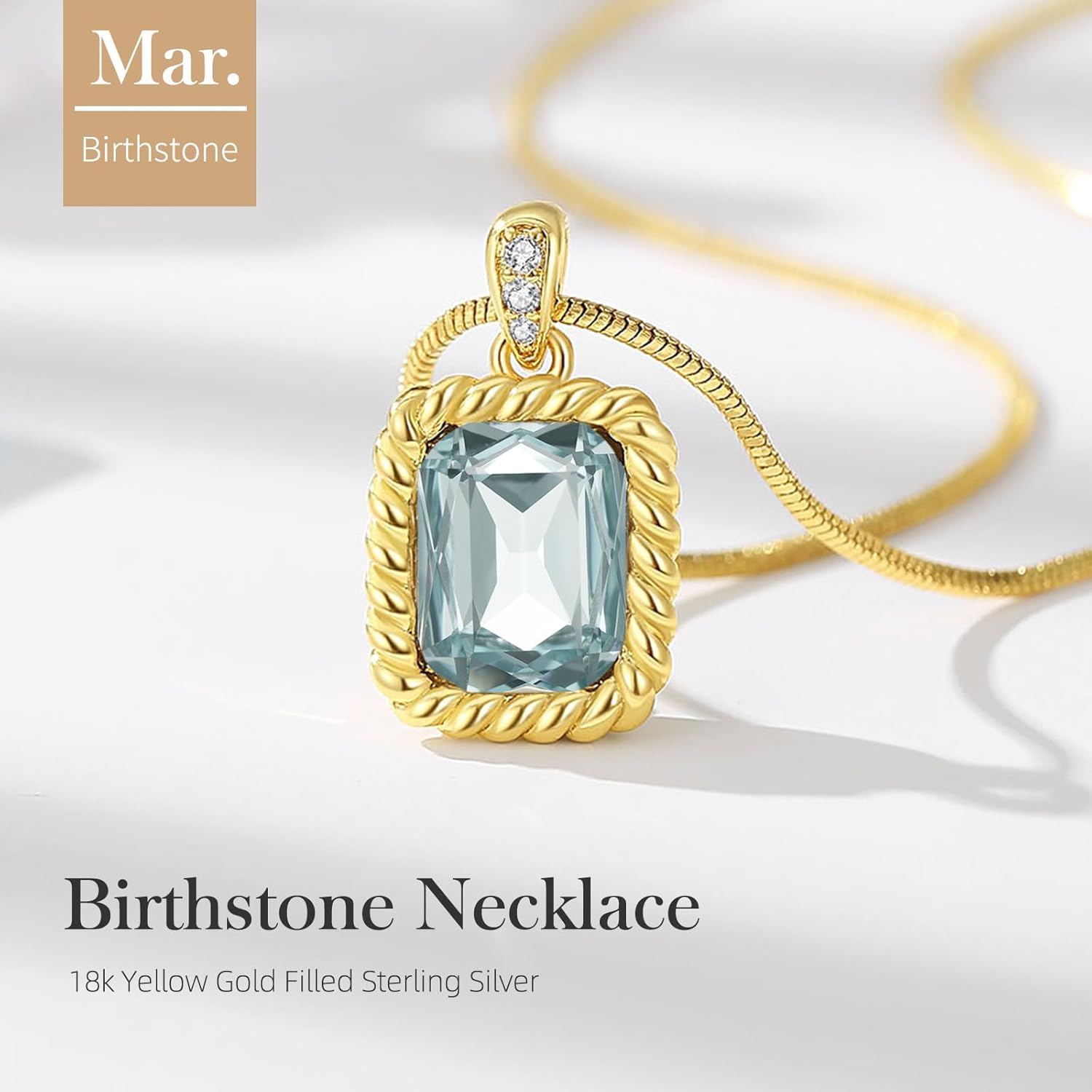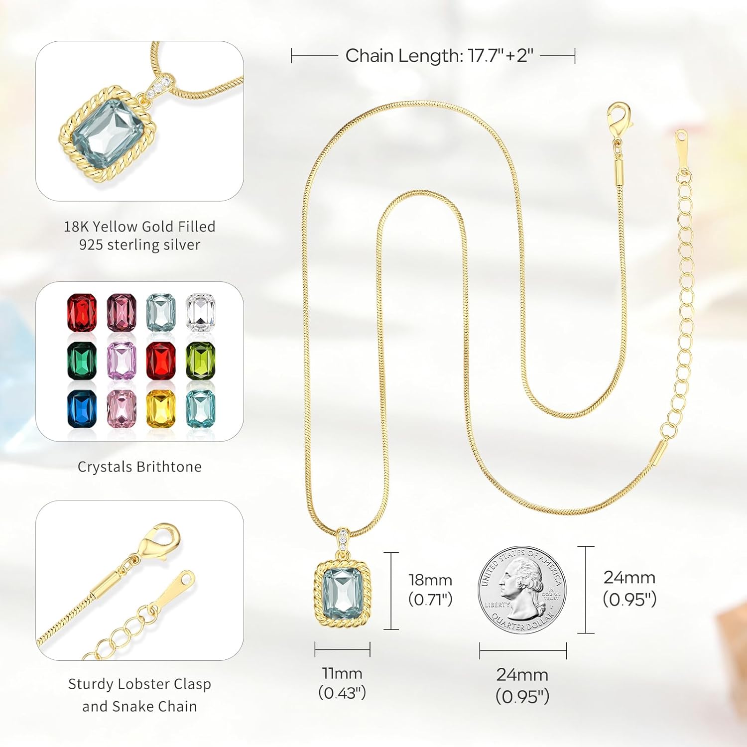 Valentine’s Day Gifts for Her-18K Gold Plated Dainty Square Crystal Birthstone Necklace,Gold Jewelry for Women,Anniversary Birthday Gifts for Women Her Wife Girlfriend Mom Womens Necklace Jewelry
