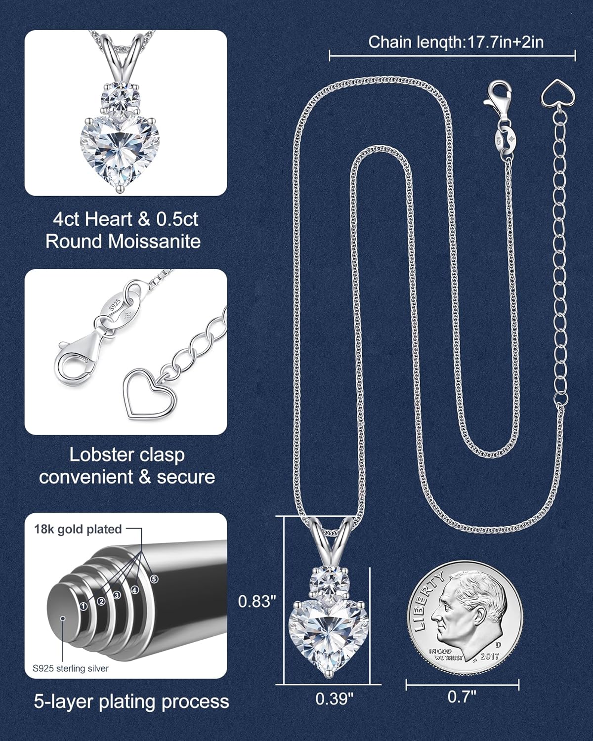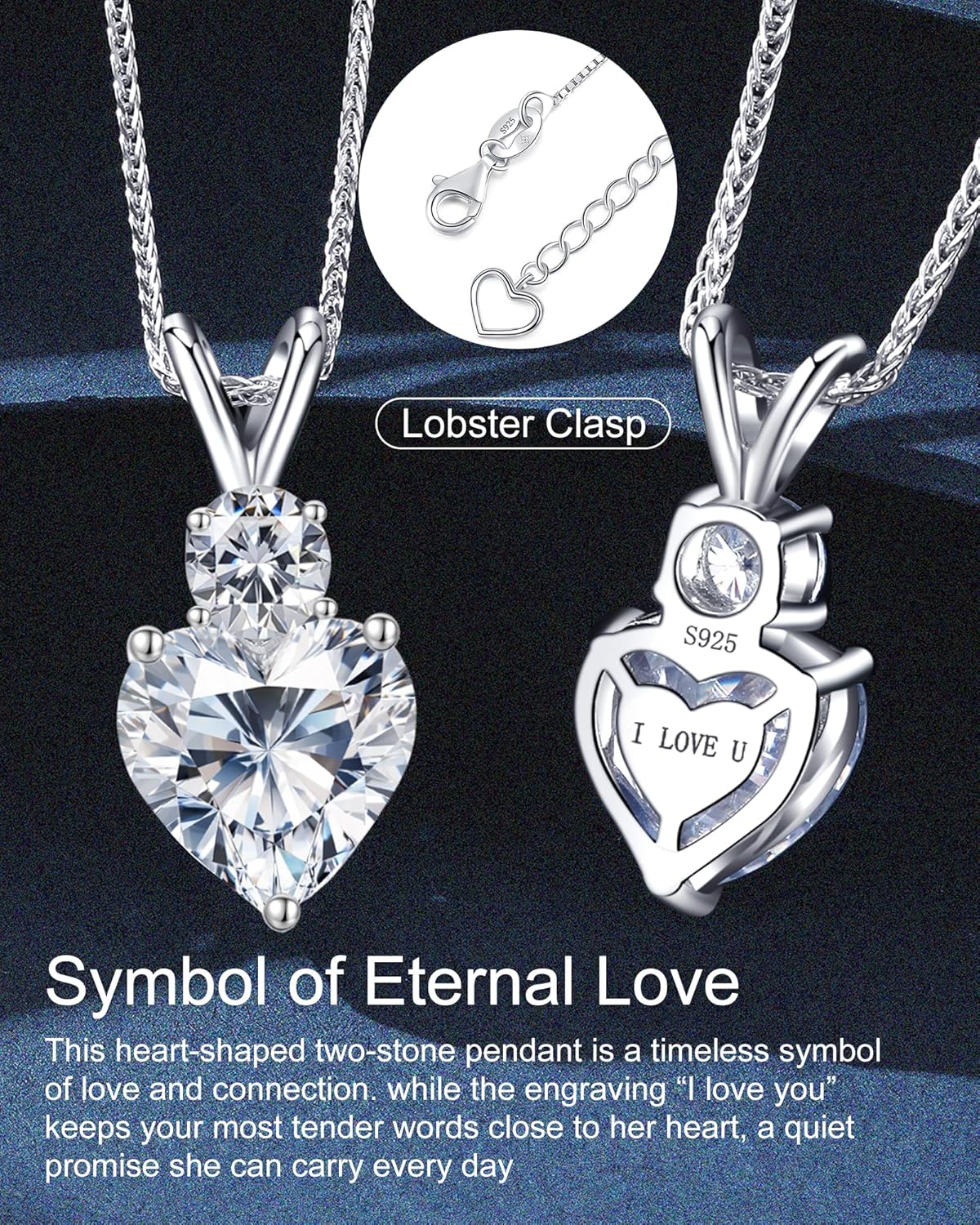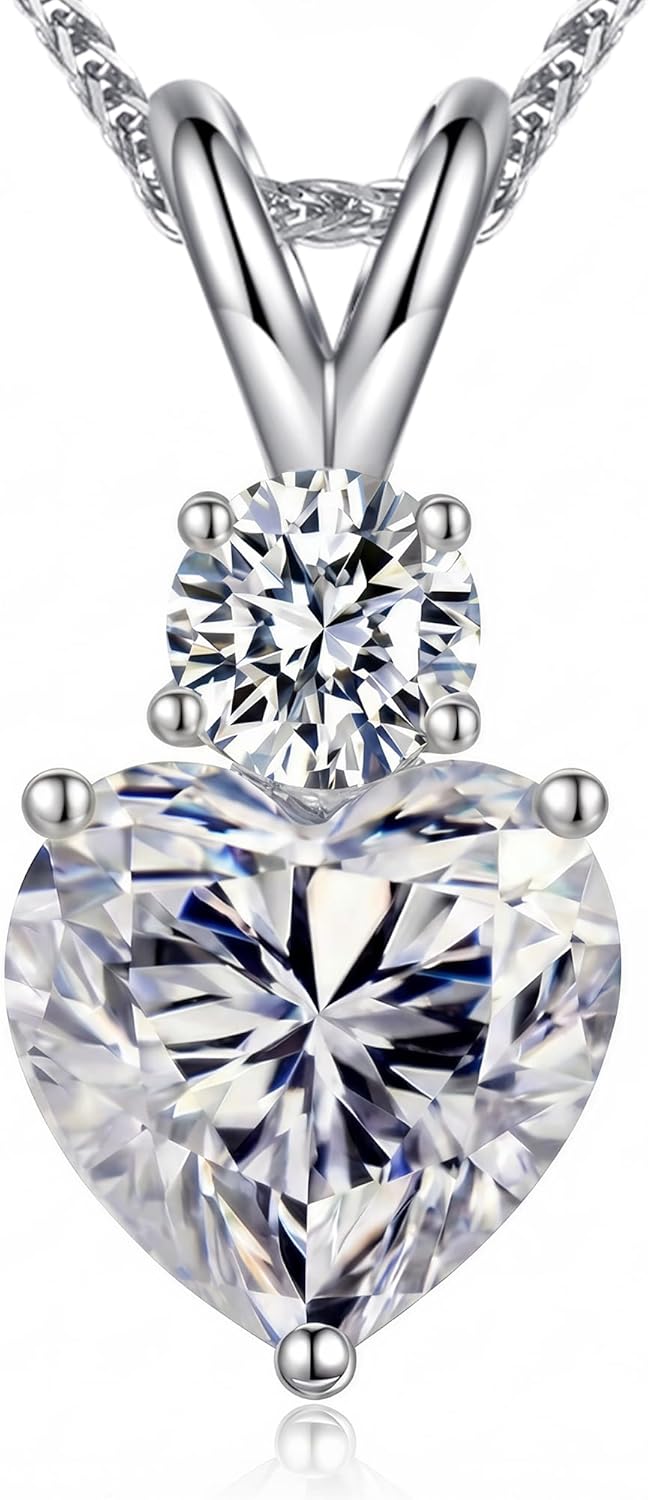 Moissanite Heart Pendant Necklaces for Women