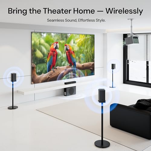 Zero Wires, Zero Limits:Pure wireless 5.1.2 surround system — no speaker cables, no clutter, just a single power cord.Experience minimalist aesthetics and complete freedom in sound.