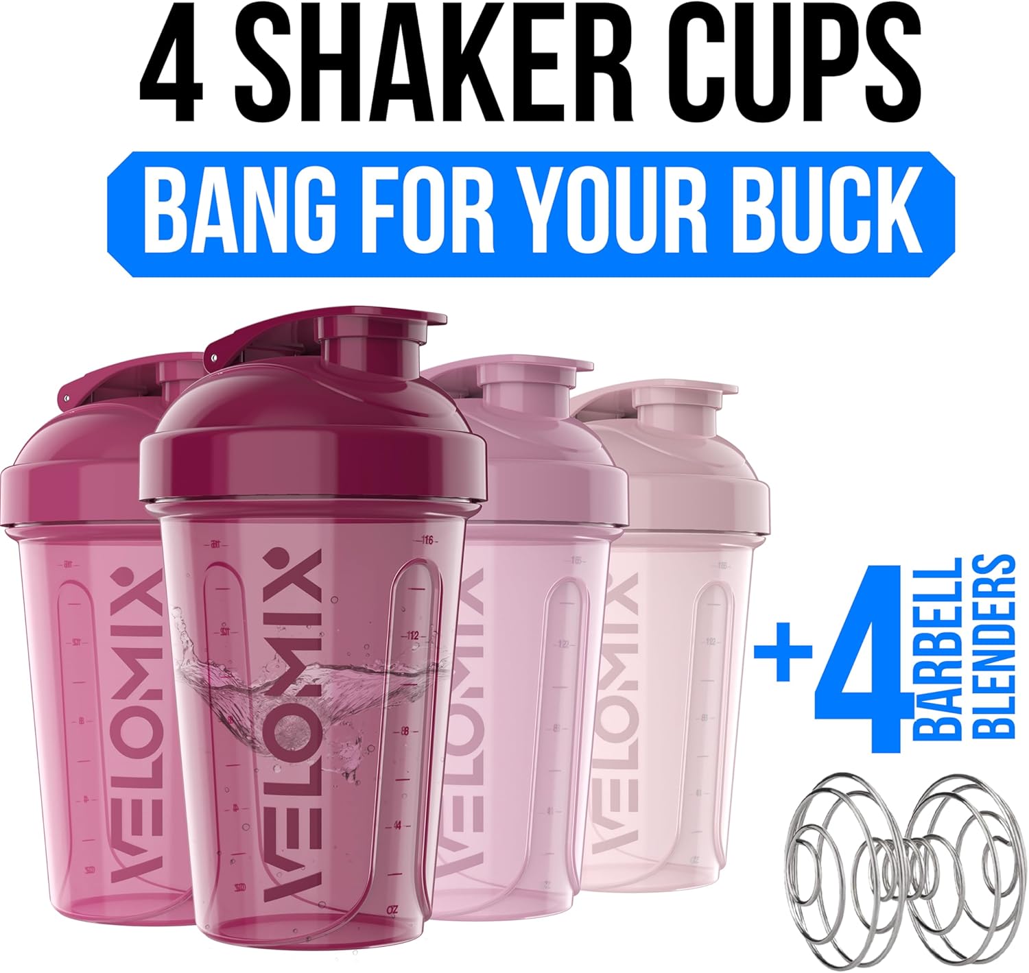 VELOMIX -4 PACK- 20 OZ Protein Shaker Bottles for Protein Mixes, Shaker Cups for Protein Shakes, Small Shaker Bottle Pack, Shaker Cup, Shakers for protein Shakes (Berry Blend)