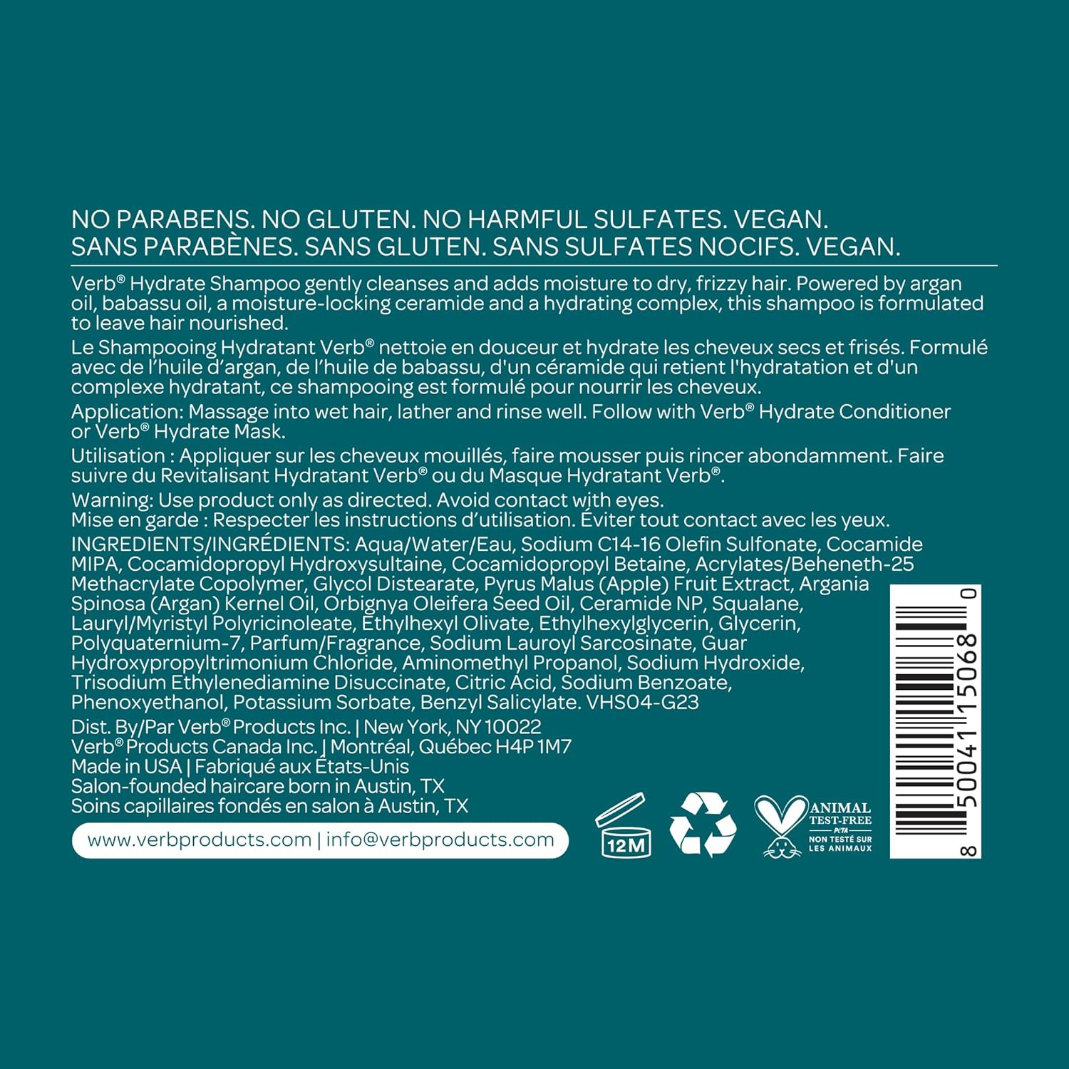 VERB Hydrate Shampoo + Conditioner Duo – Cleanses + Nourishes Dry + Frizzy Hair to Smooth + Reduce Frizz – Amber + Warm Jasmine Scent
