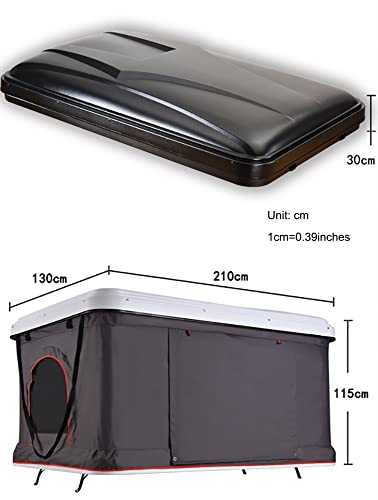 HARD SHELL ROOF TENT: The roof tent is made of durable ABS hard shell and special Oxford with PU waterproof coating, plus a reinforced aluminum alloy /ABS base to resist strong storms and rain, giving you more safety camping experience