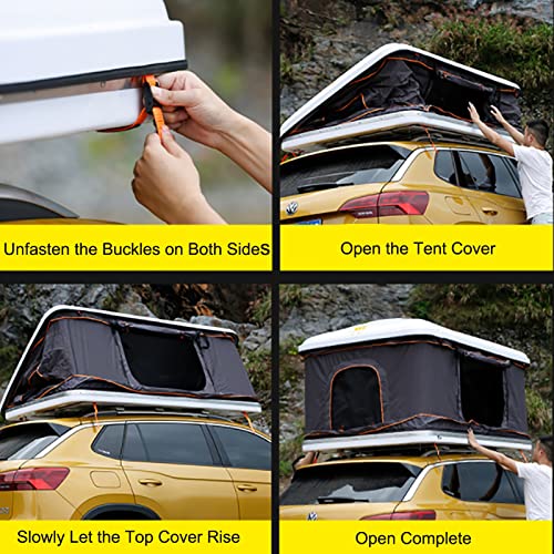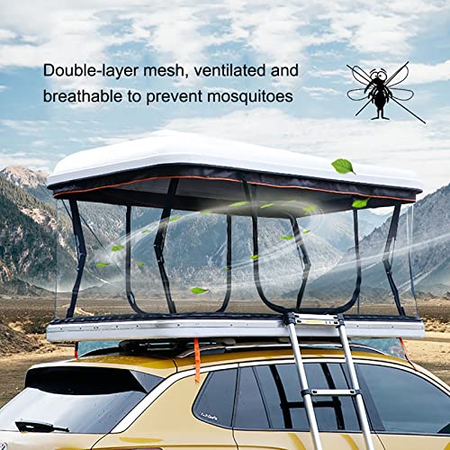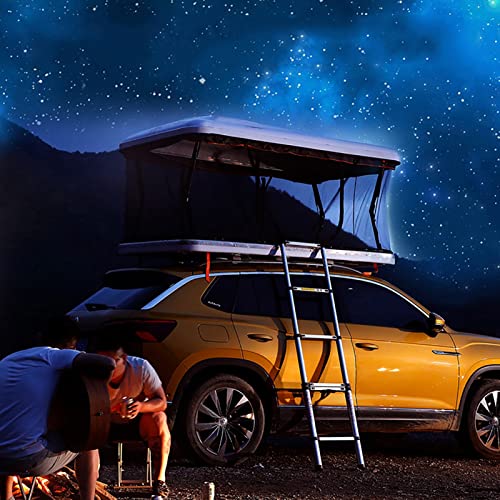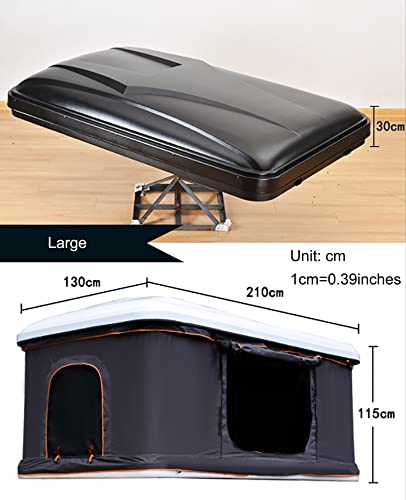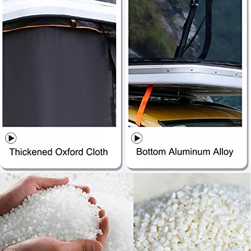 HARD SHELL ROOF TENT: The roof tent is made of durable ABS hard shell and special Oxford with PU waterproof coating, plus a reinforced aluminum alloy /ABS base to resist strong storms and rain, giving you more safety camping experience