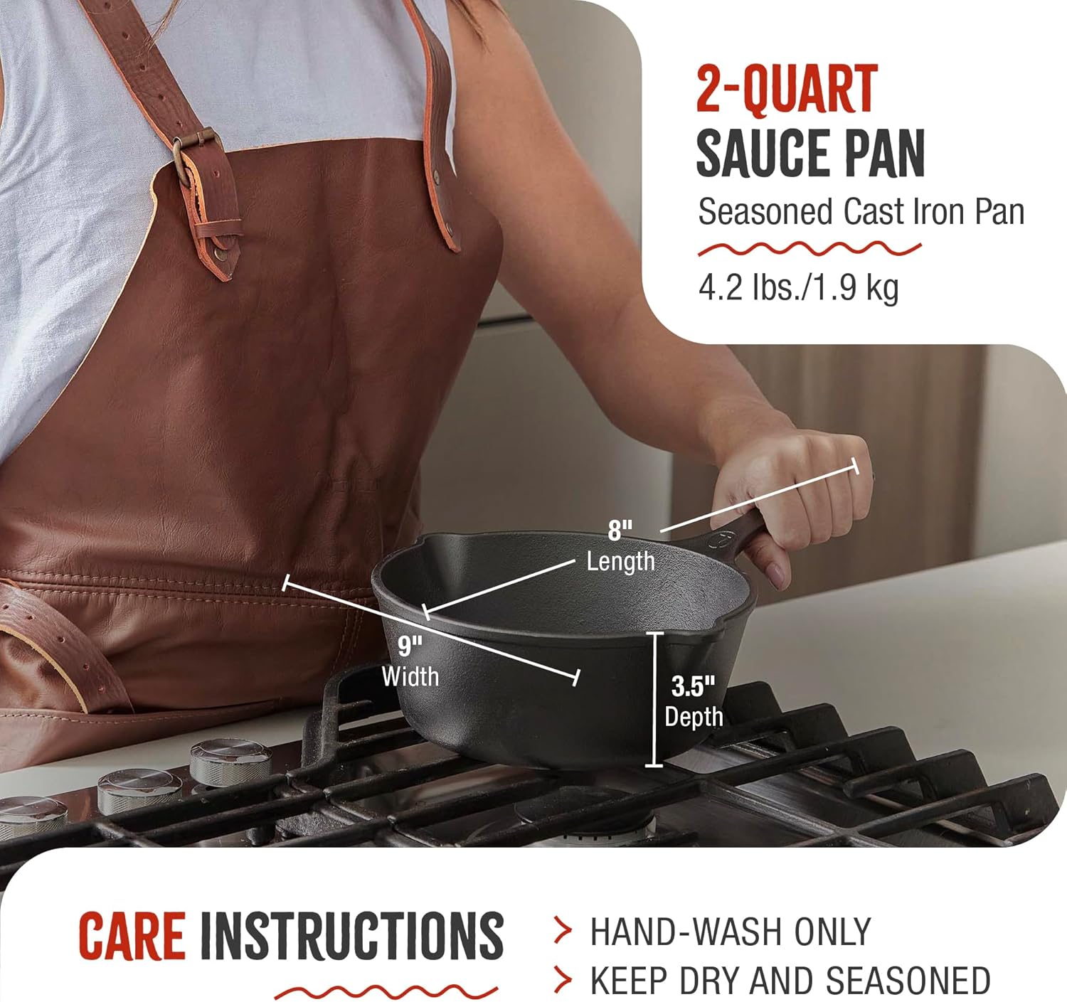 EASY TO USE: This versatile cast iron sauce pot can be used with an induction, gas, ceramic, or electric stovetop or in an oven, on a grill, or over a campfire. The drip-free pour spouts on the side make serving easier, reducing splatter and mess.