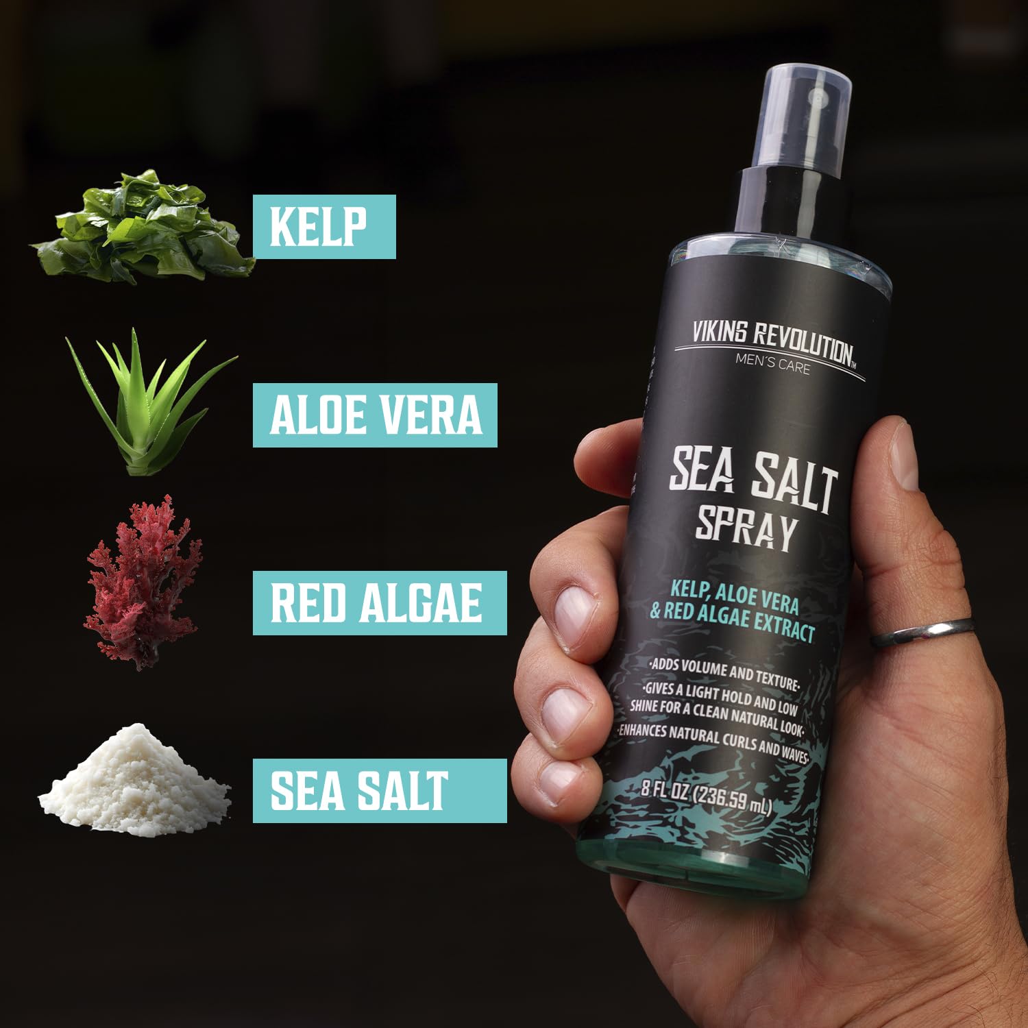 Viking Revolution Sea Salt Spray for Hair Men (8fl oz), Hydrating Hair Oil for Men with Vitamin E (3.38fl oz) and Styling Powder (1oz) – Mens Styling Texturizing Kit