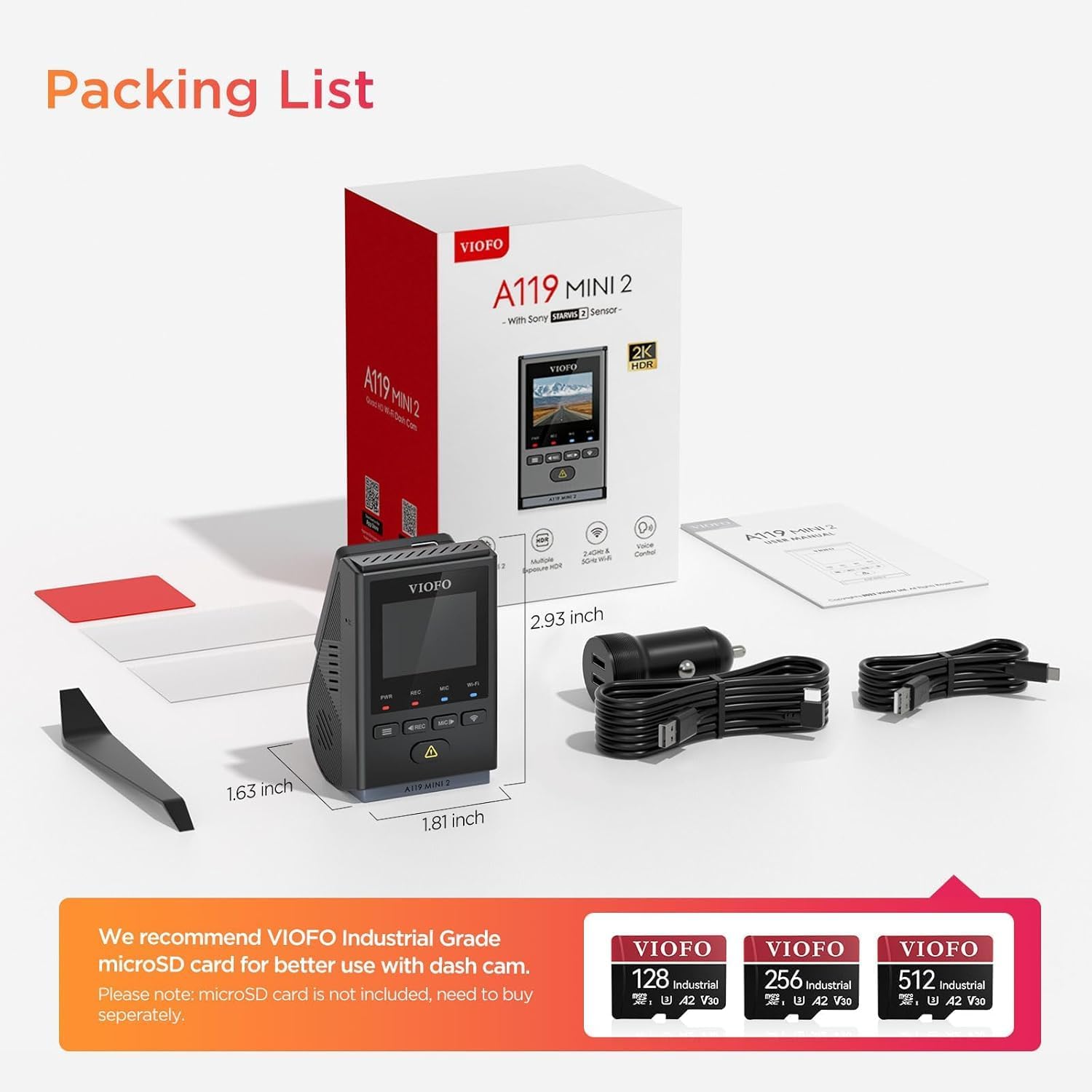 Specification: VIOFO Dash Cam A119 Mini 2, STARVIS 2 Sensor, 2K 60fps/HDR 30fps Voice Control Car Dash Camera with 5GHz Wi-Fi GPS, Night Vision 2.0, 24H Parking Mode, Supercapacitor (SD Card Not Included)