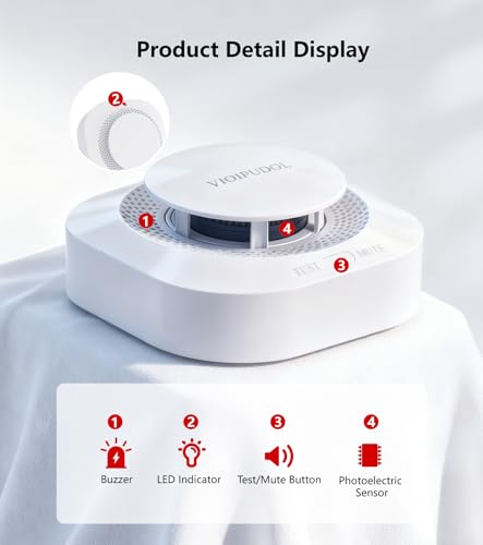 VIOIPUDOL Smoke Detector, Battery-Powered Fire Alarm with LED Indicator, Portable Smoke Alarm for Home Kitchen Bedroom Safety, 4 Packs
