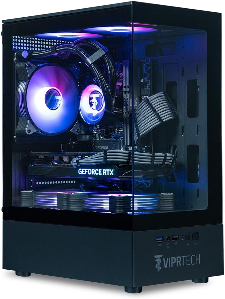ViprTech Stryker 4.0 Liquid-Cooled PC – AMD Ryzen 7 (4.4GHz Turbo), RTX 5060 8GB, 16GB DDR4 3200, 1TB NVMe SSD, 700W PSU, WiFi BT, Win 11 Pro, RGB, Gaming Desktop Computer Prebuilt, Black