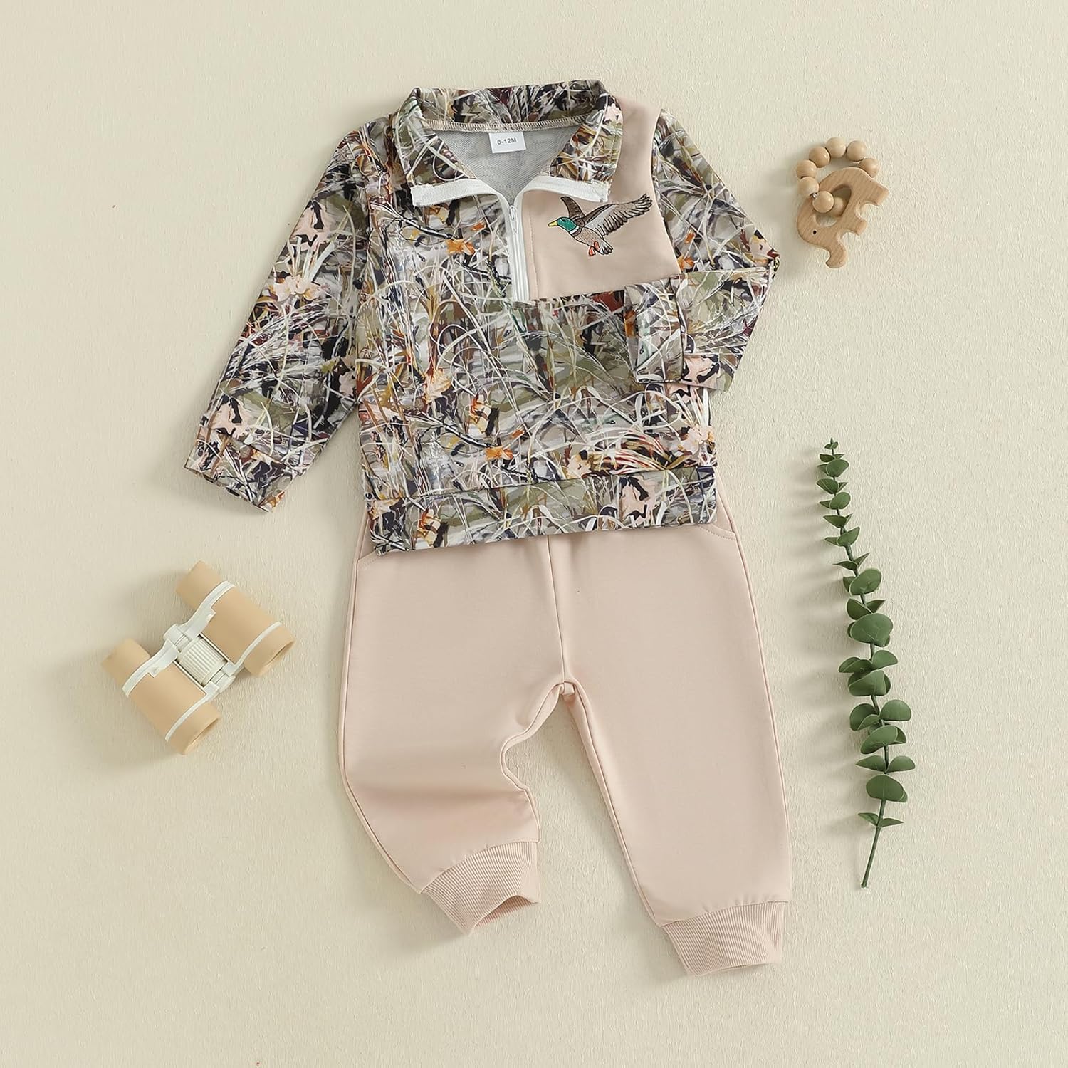 VISGOGO Toddler Baby Boy Hunting Outfit Duck Half Zip Long Sleeve Sweatshirt Pants Set 2 Fall Camouflage Clothes