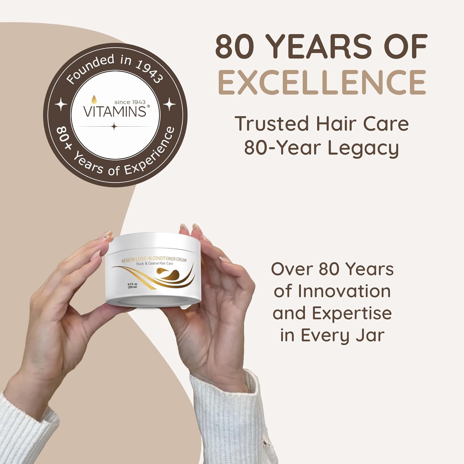 VITAMINS hair cosmetics Keratin Leave in Conditioner for Dry Damaged Hair – Curl Defining Cream for Frizz Control, Detangling & Ultimate Hydration – For Thick Coarse Straight & Curly Hair