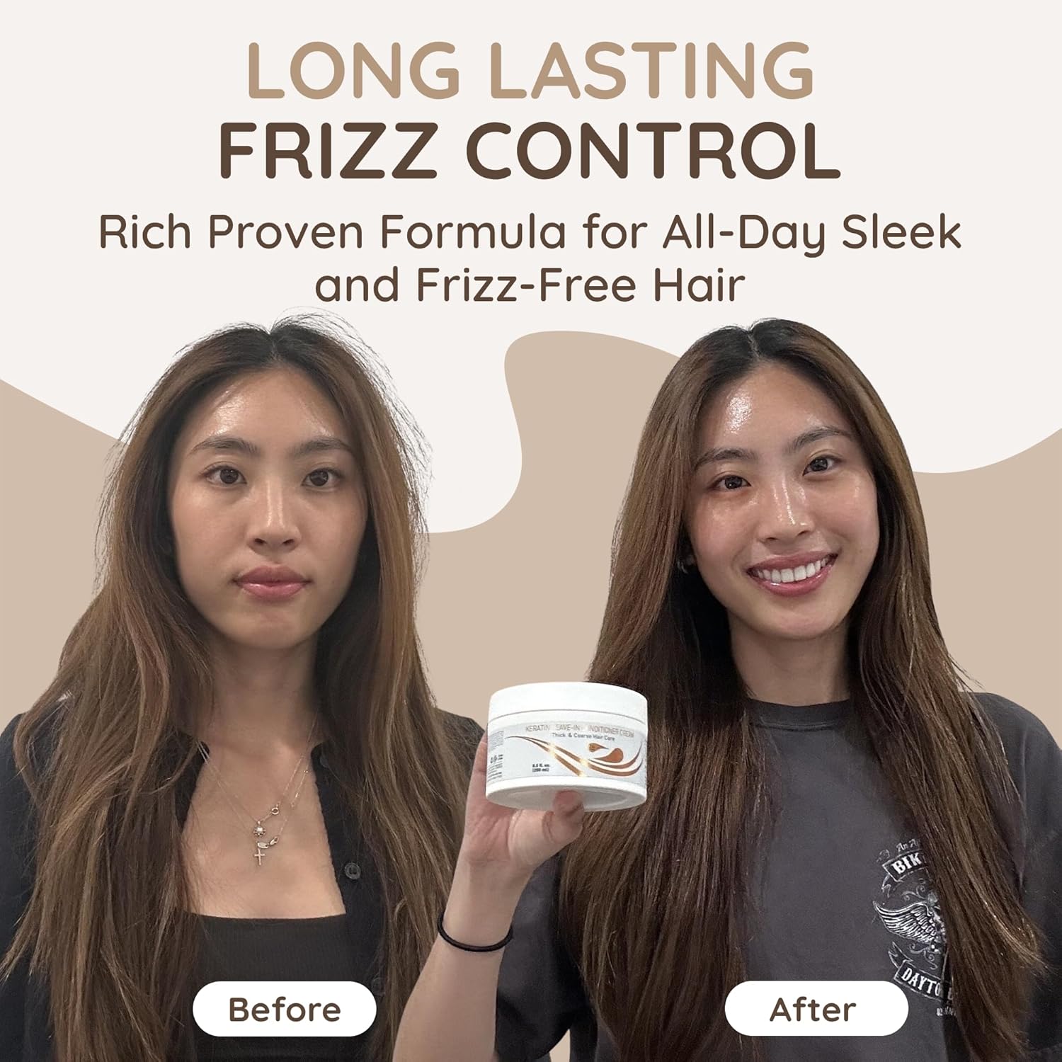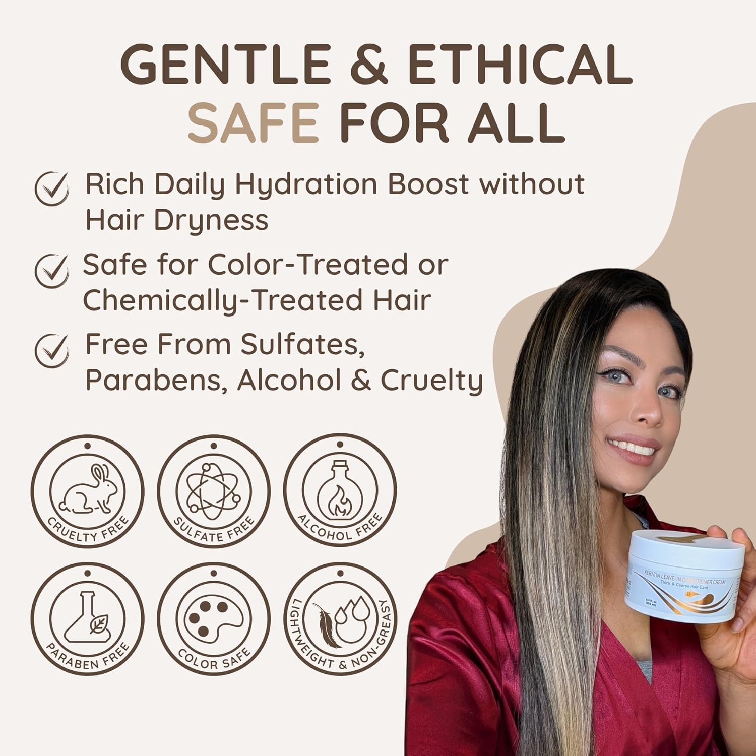Intense Hydration: Infused with natural oils, our keratin leave in conditioner cream deeply moisturizes and nourishes, leaving your hair soft, shiny, and revitalized