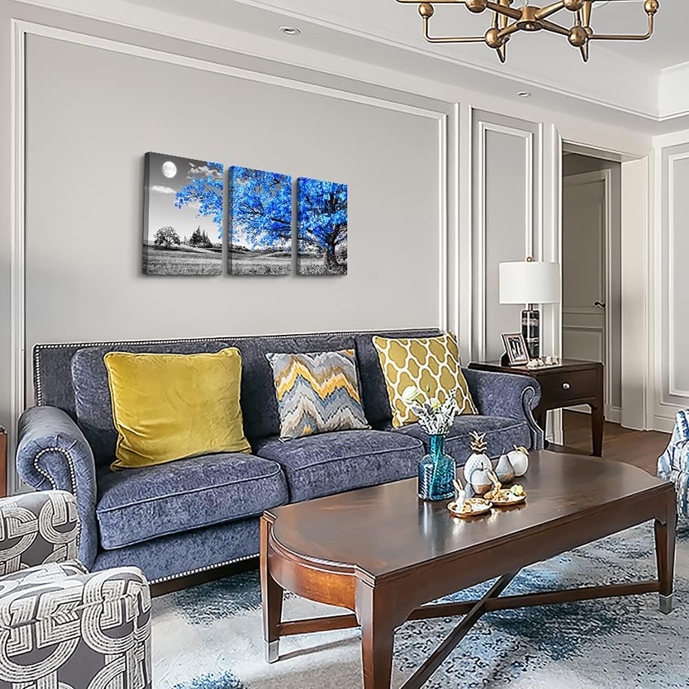 Specification: Wall Art For Living Room black and white Blue tree moon Canvas Wall Decor for Home artwork Painting 12″ x 16″ 3 Pieces Canvas Print For bedroom Decor Modern Salon kitchen office Hang a picture