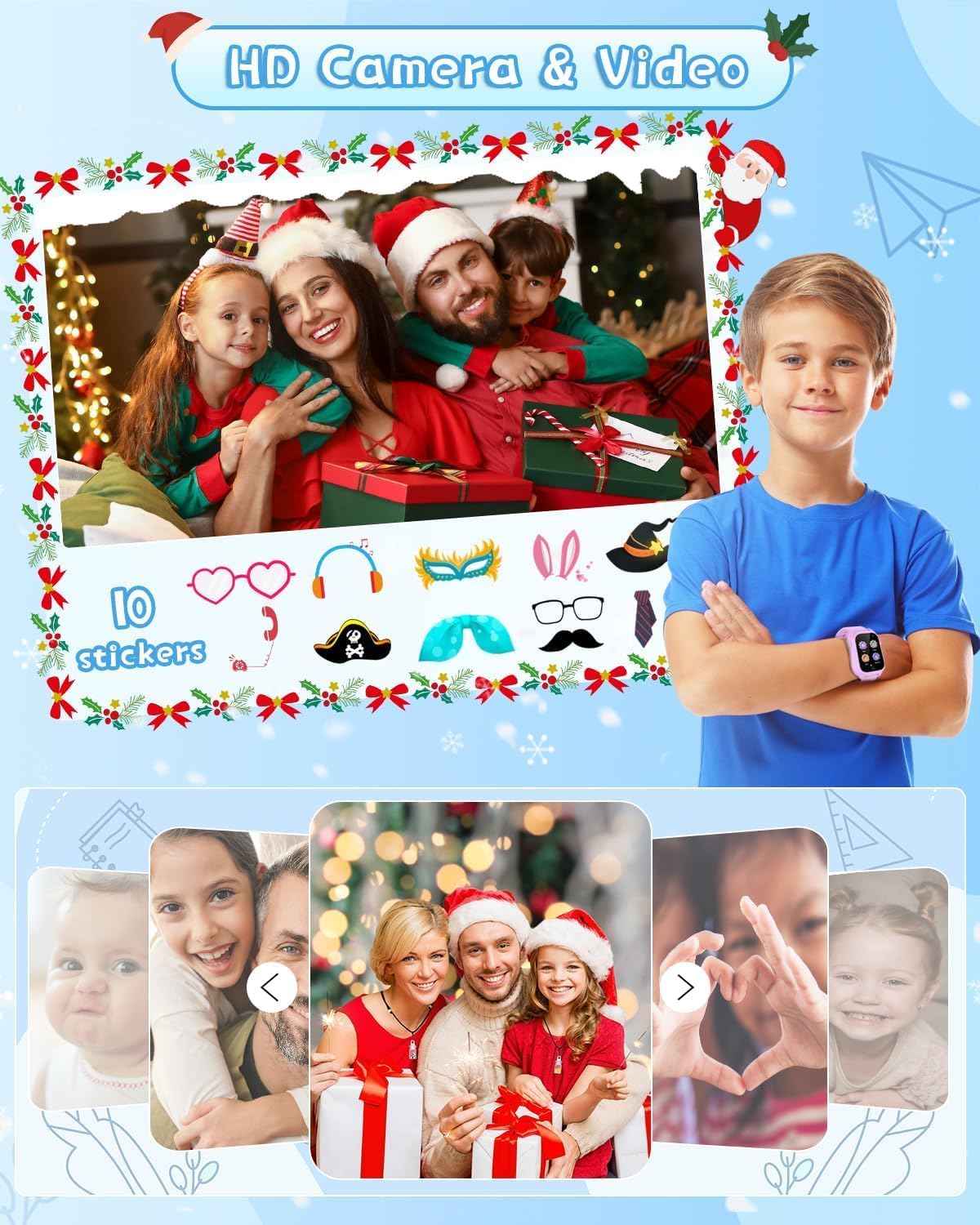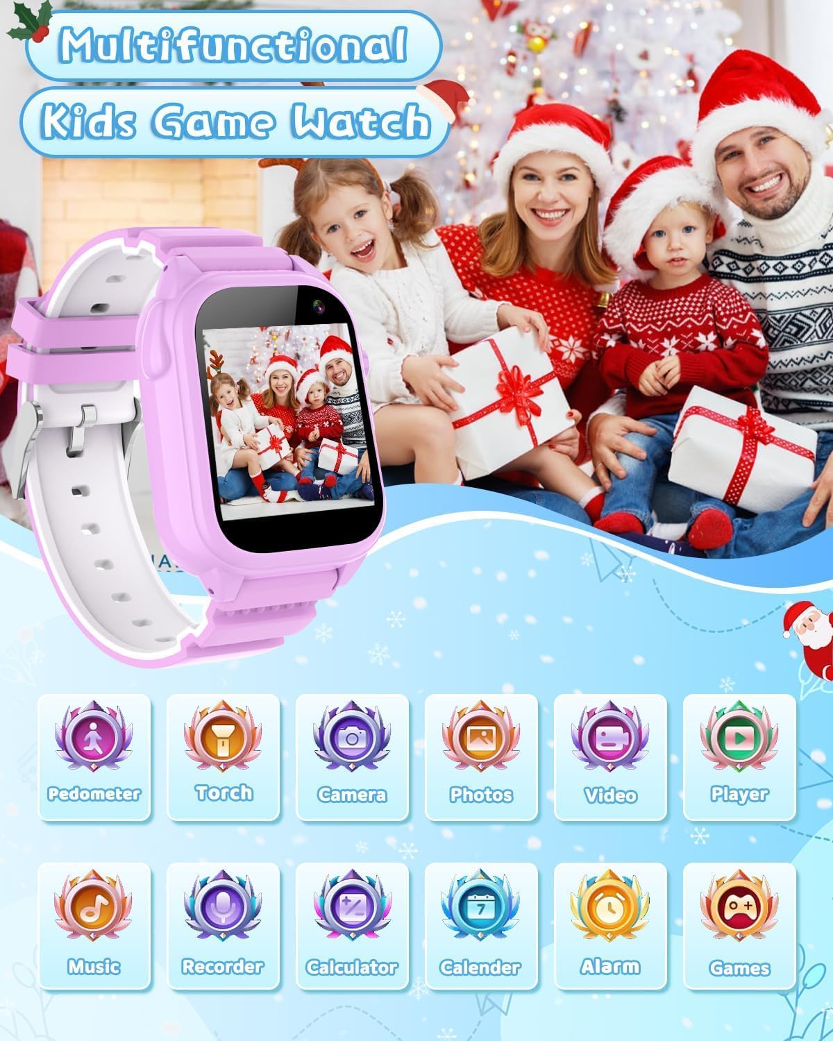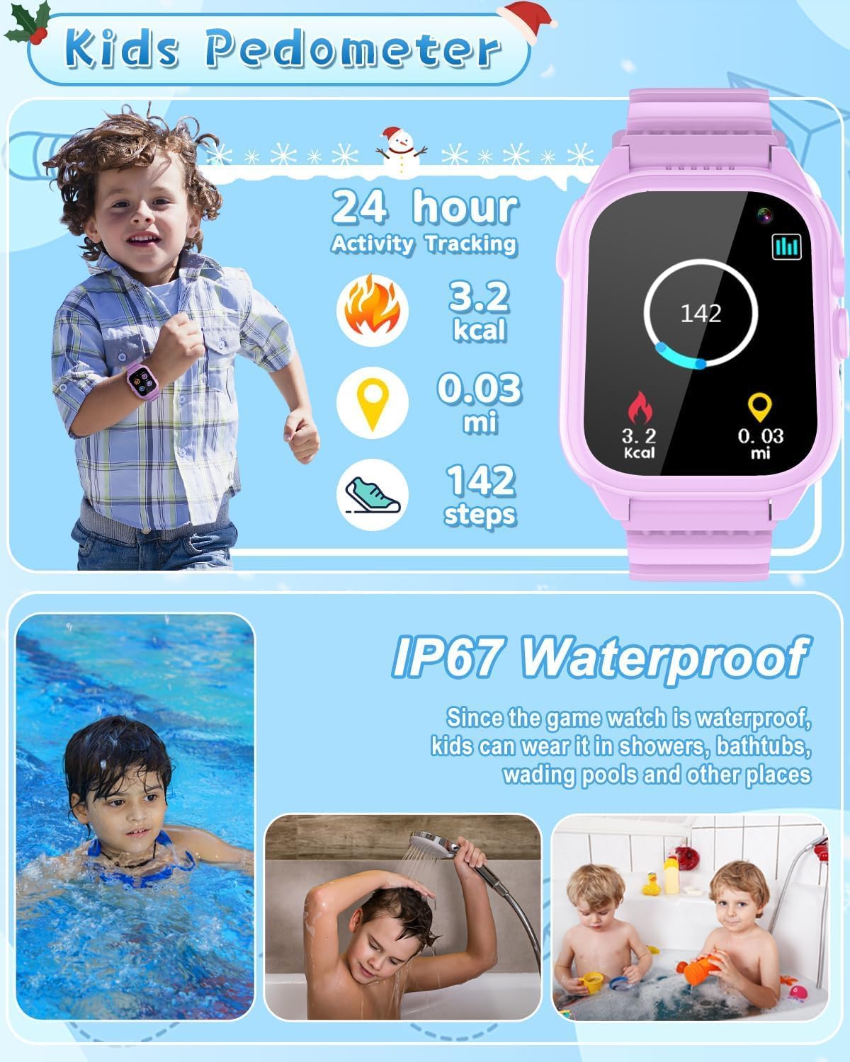 Waterproof Kids Smart Watch for 3-12 Years Old Boys Girls Toys with 26 Game Video Camera Pedometer Music Player Alarm Clock Calculator 1.44” HD Touchscreen Electronic Learning Toys Birthdays Gifts