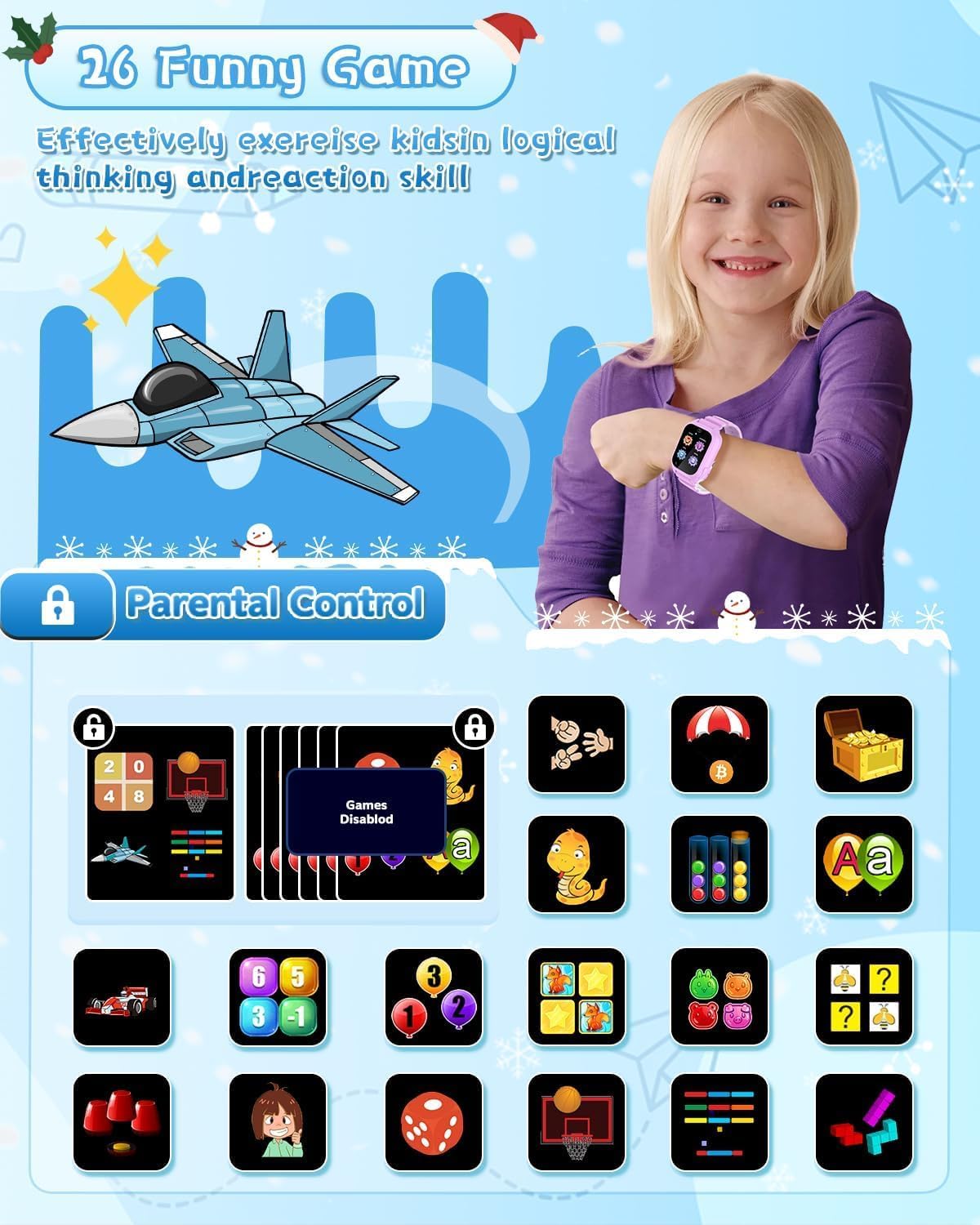 26 Puzzle Game: The watch comes preloaded with 26 games for kids to choose from. Appropriate games can improve kids’ brain sensitivity and flexibility. It is a perfect gift for 3-12 year old boys and girls.