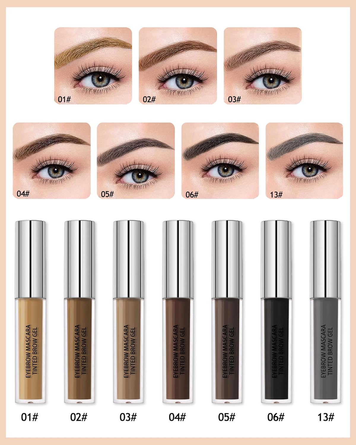 TINTED BROW GEL – The upgraded tinted brow gel contains high-quality man-made fiber, Silicone Resin, and Vitamin E. Nourish eyebrows and solid color with luster, at the same time that easy to shapes, fills, holds your brows in place. The eyebrow gel fills in sparse areas to increase fullness and thickness for brows and make them look natural and healthy