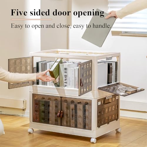 2.Introducing our Foldable Storage Cabinet featuring a Thickened Five-Sided Door Design. This versatile cabinet offers a Strong Load-Bearing Capacity, ensuring durability for all your storage needs. With Easy Opening and Closing, it allows for Flexible Storage and Effortless Item Handling. Perfect for organizing any space while maintaining style and functionality.