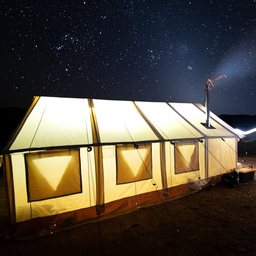 SETUP: Requires two or three people to pitch the tent. Include high quality powder coated metal brackets and lightweight anodized aluminum robust poles with steel wire for extra reinforcement (All stakes and rubber mallet included). Additional flexibility by adding a Porch for extra functional room that comes in different sizes or Fly Sheet for added protection. Perfectly suited for elk hunting, family tents for camping, glamping and even just living in a tent – Your home away from home!